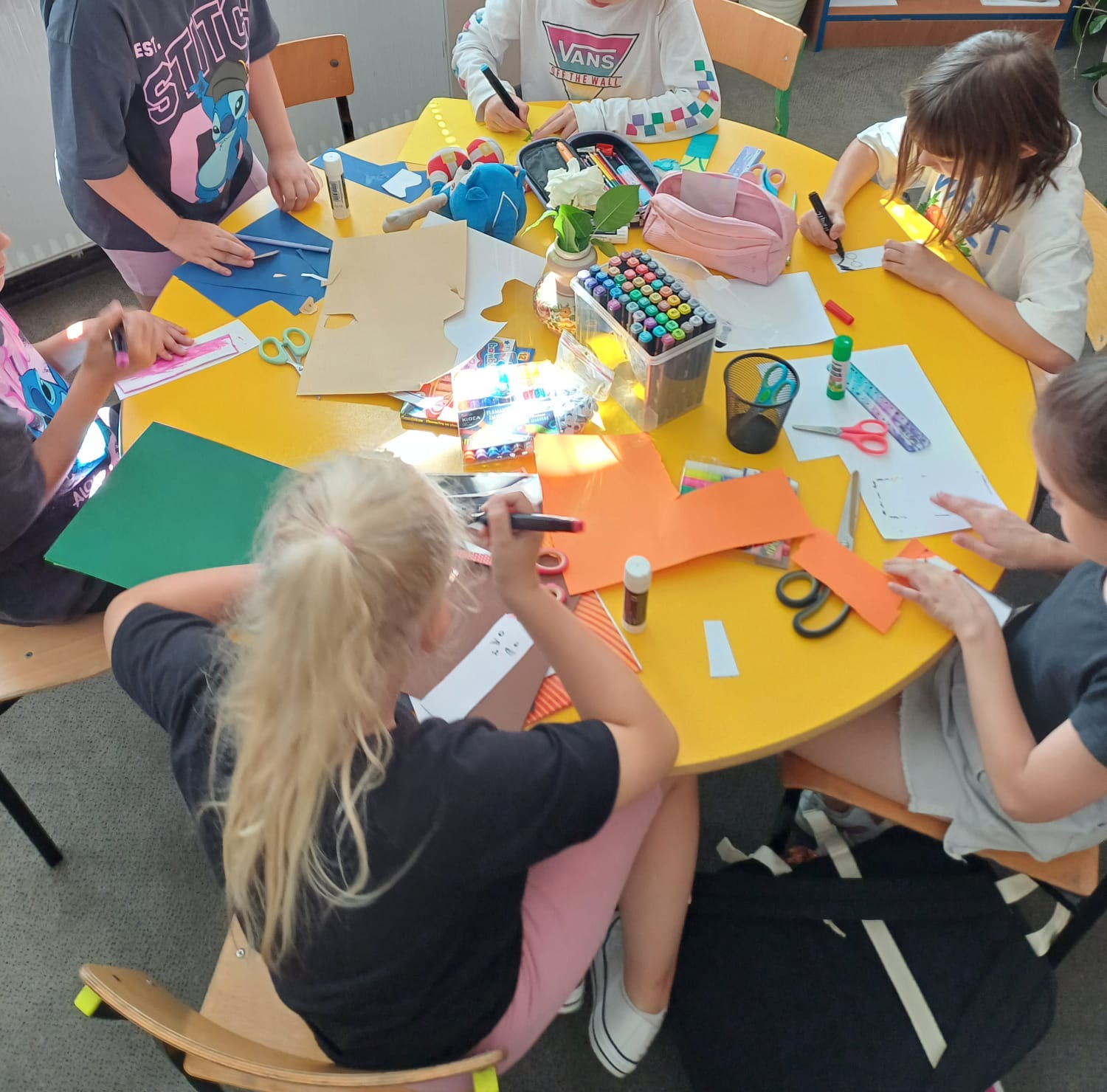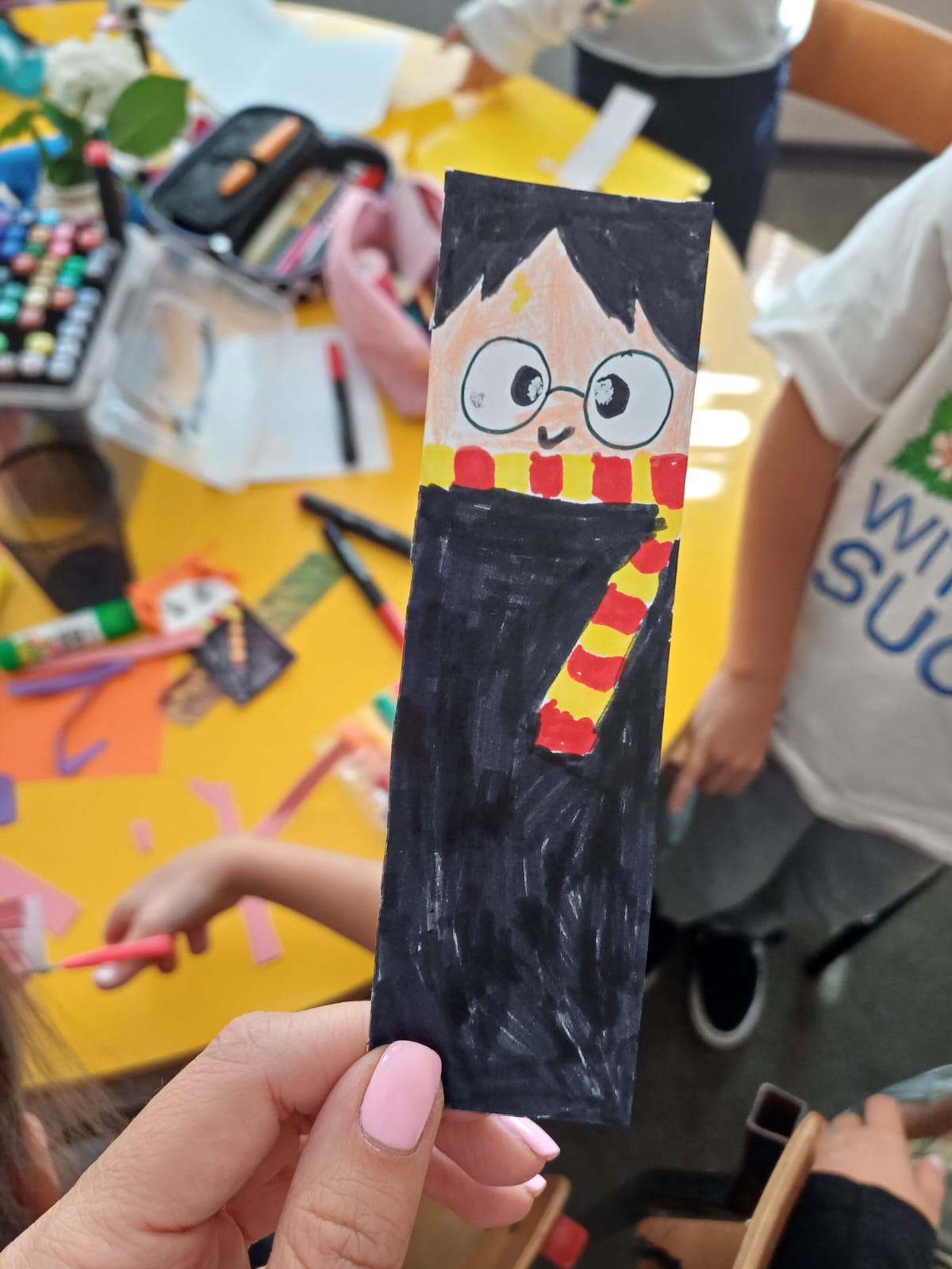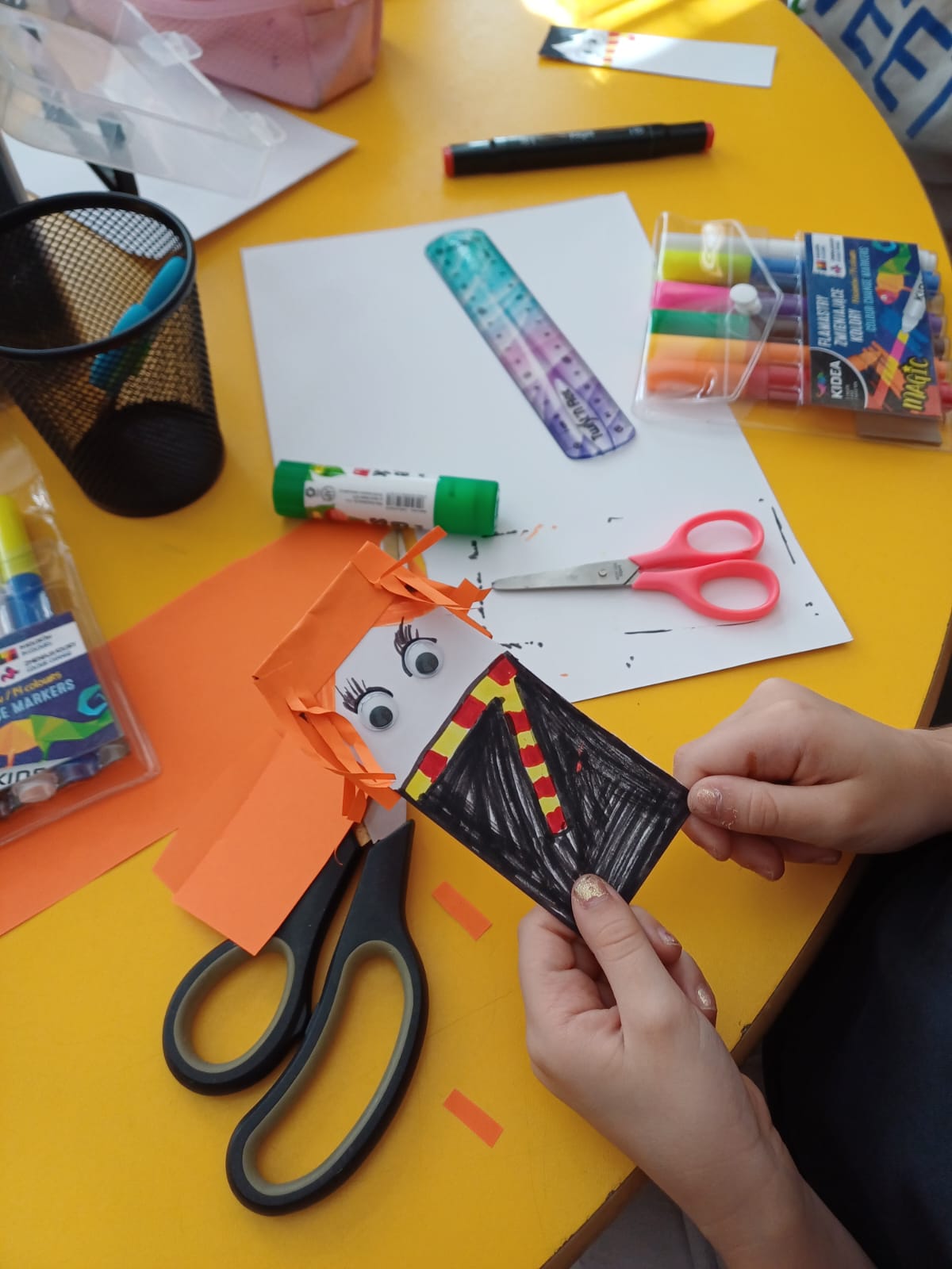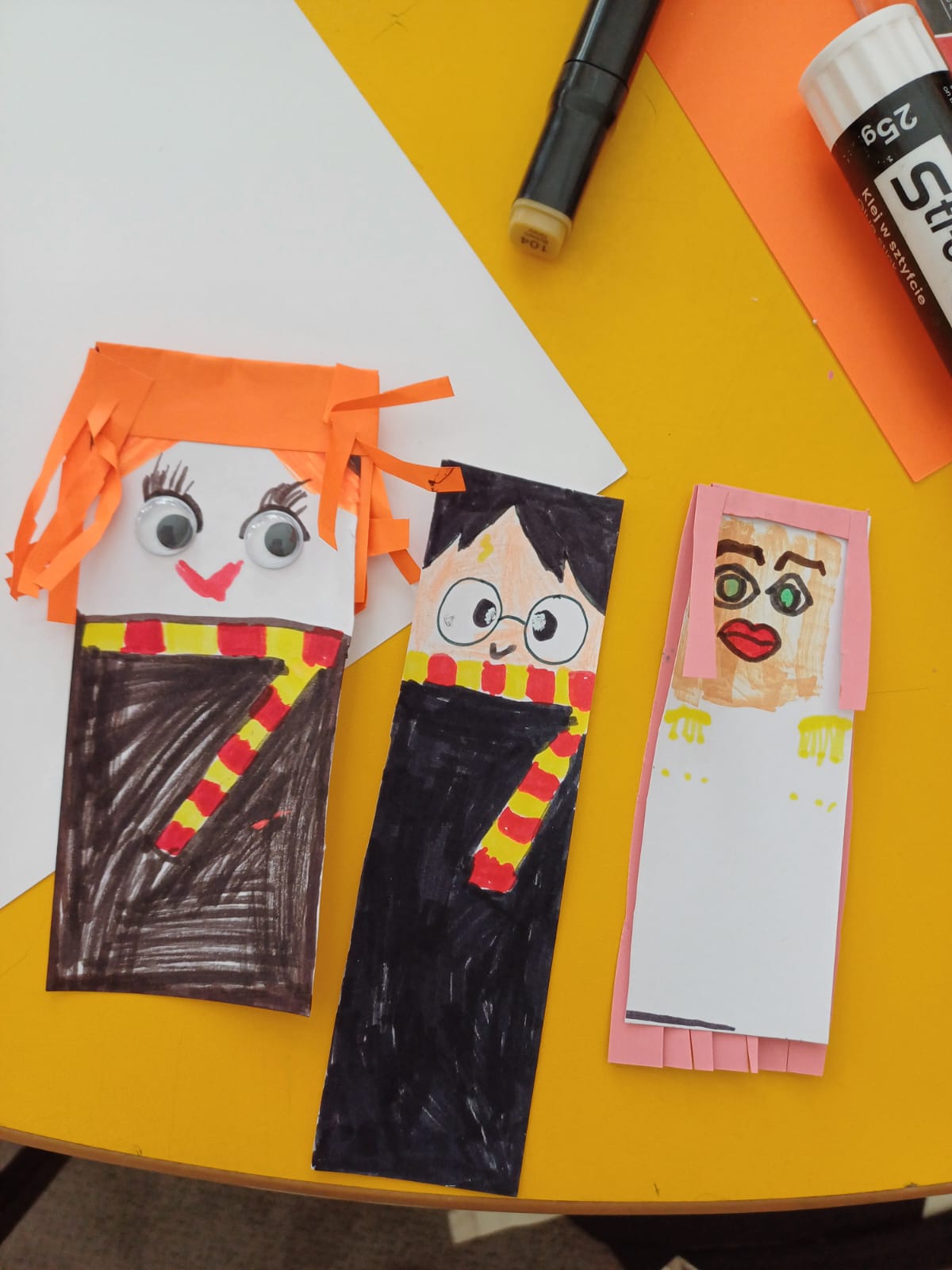 Wśród wielu pomysłów szczególną popularnością cieszył się motyw Harry’ego Pottera, który pojawił się na licznych pracach. Dzieci z zapałem sięgały po kredki, flamastry i kolorowy papier, a podczas tworzenia towarzyszyły im uśmiech, radość i dobra zabawa.