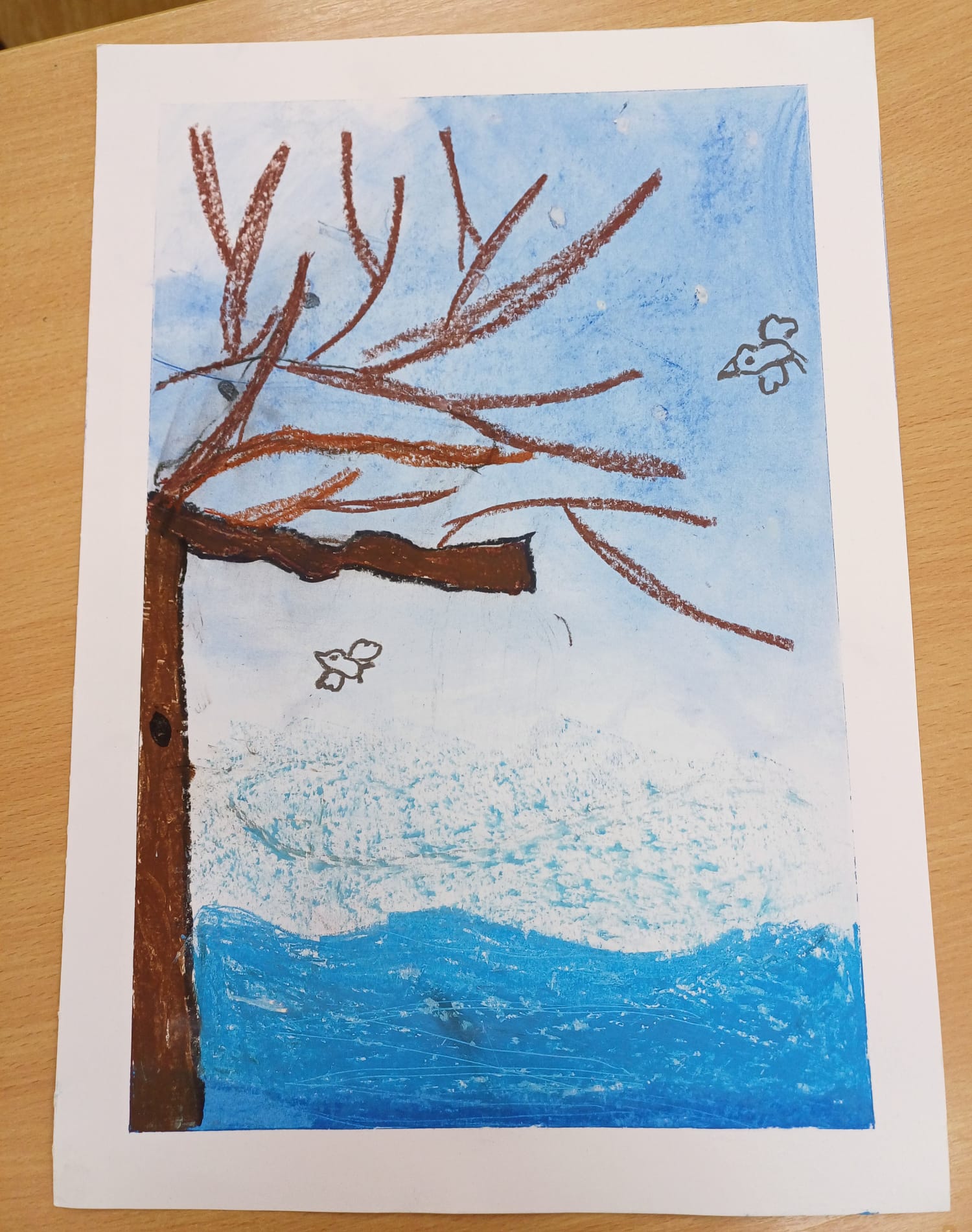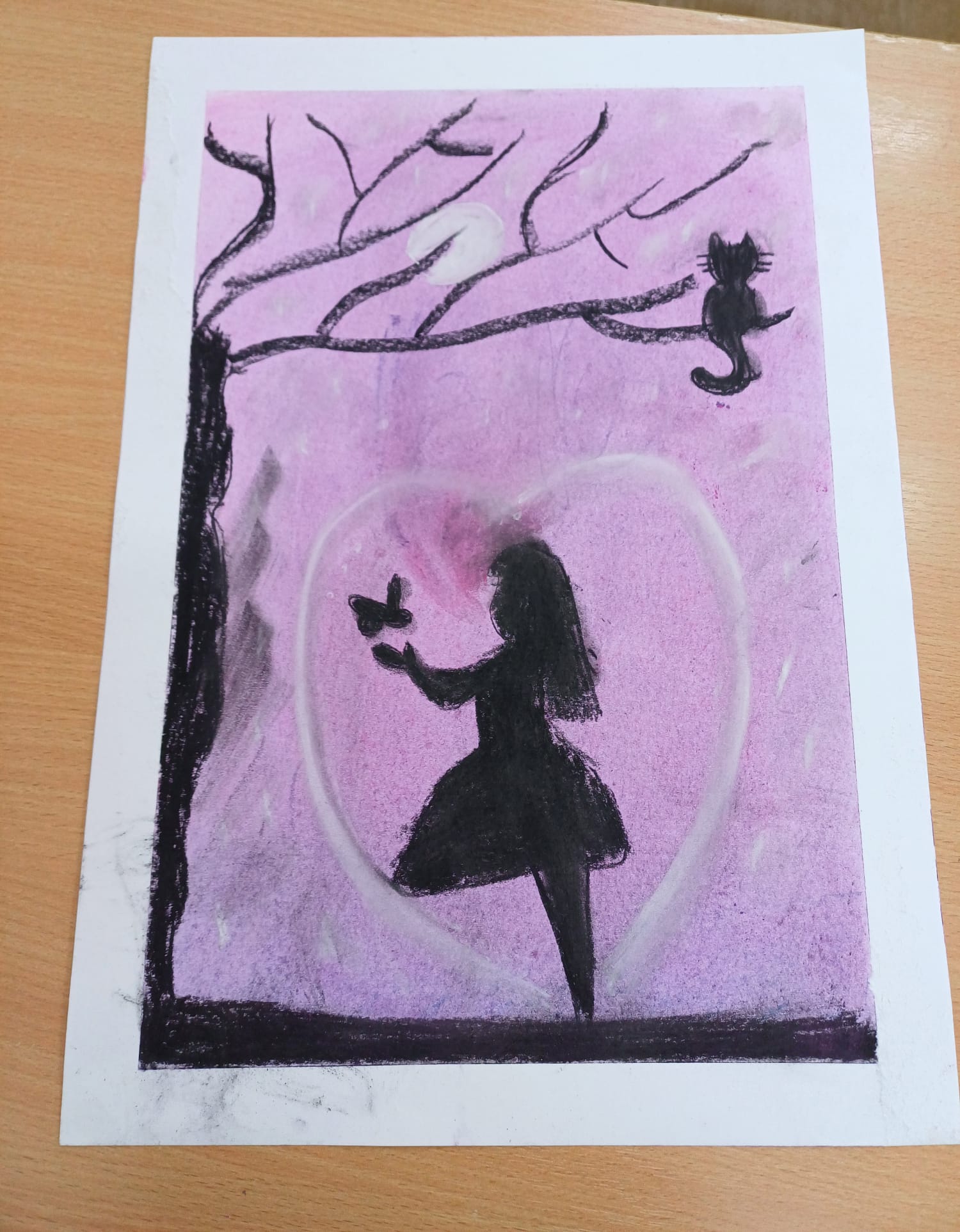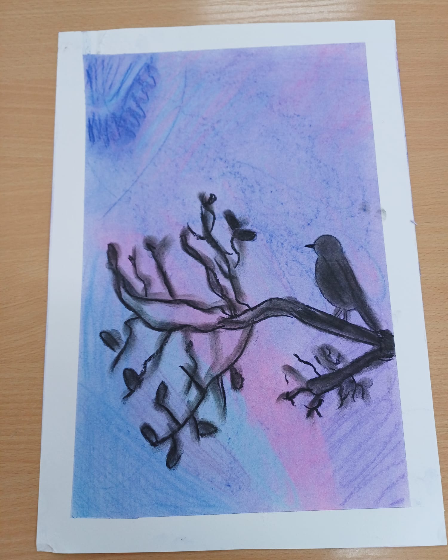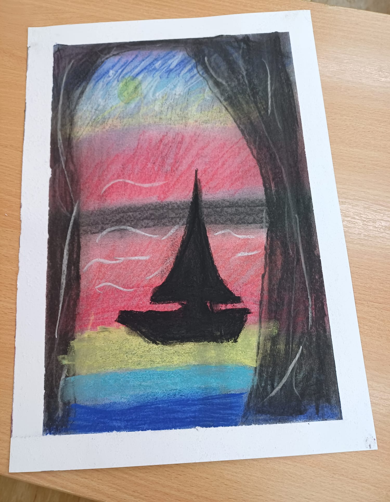 Podczas ostatnich zajęć kółka plastycznego uczniowie rozwijali swoją wyobraźnię i zdolności manualne, tworząc prace pastelami. Uczniowie wykonali małe dzieła, w których na barwnym tle wyraźnie odcinały się czarne kształty postaci, zwierząt i przedmiotów. Kontrast ten nadał rysunkom wyrazistości i wyjątkowego nastroju. Suche pastele pozwoliły na delikatne przejścia kolorystyczne, a odważne zestawienia barw dodały pracom ekspresji.