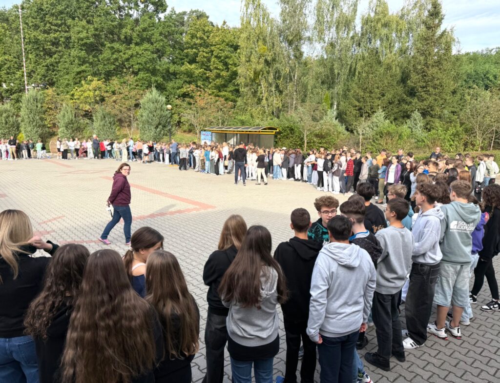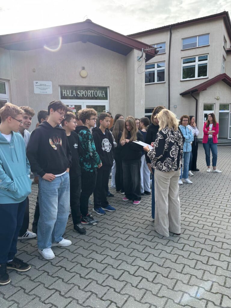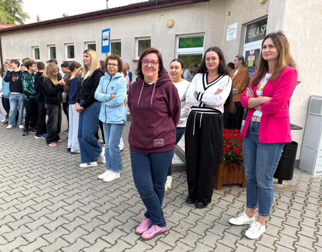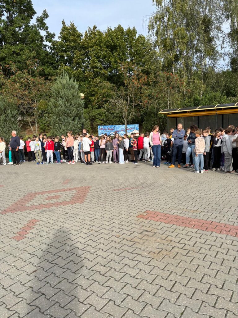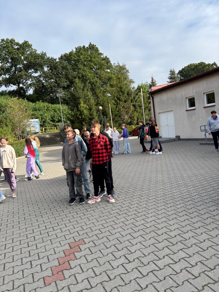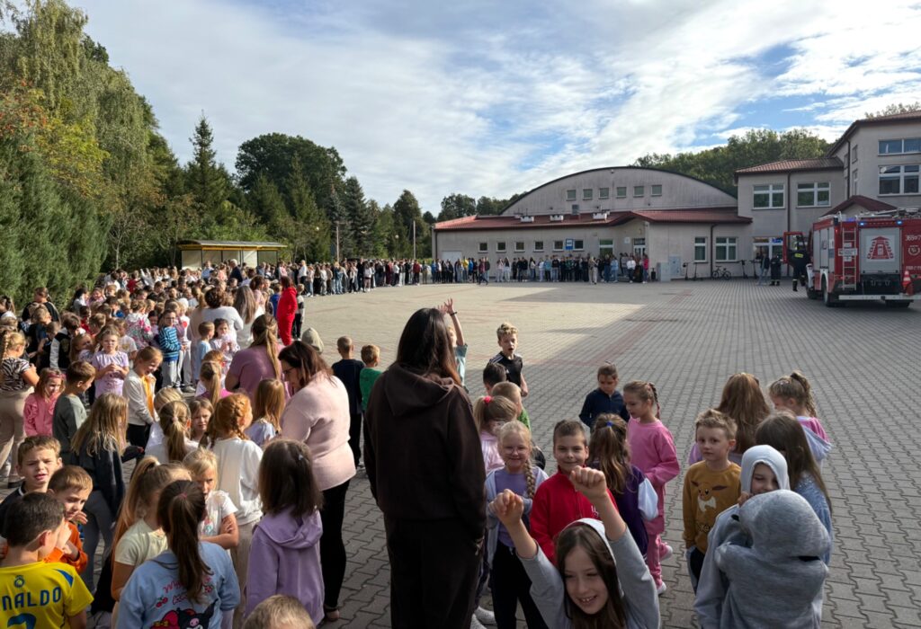 23 września o godzinie 9.00 w naszej szkole rozległ się sygnał alarmowy – rozpoczęła się próbna ewakuacja. Wspólnie ze strażą pożarną ćwiczyliśmy, jak należy zachować się w takiej sytuacji. Uczniowie szybko i spokojnie opuścili budynek, ustawiając się równiutko według klas. Pani Dyrektor Anna Mrozowska sprawdziła obecność, a następnie przekazała strażakom informację, że wszyscy są bezpieczni. Dzięki sprawnemu działaniu cała próba zakończyła się sukcesem.