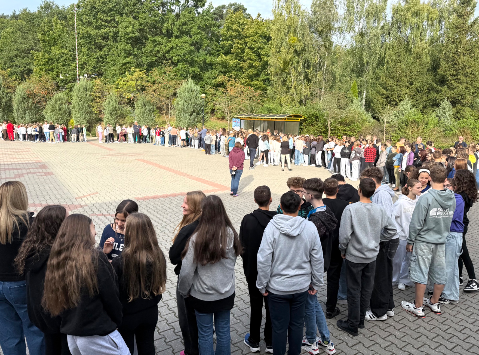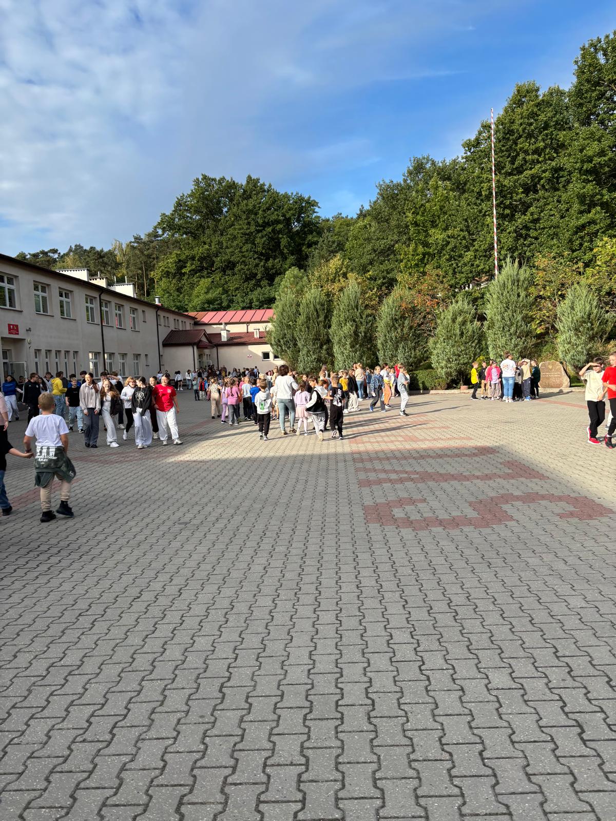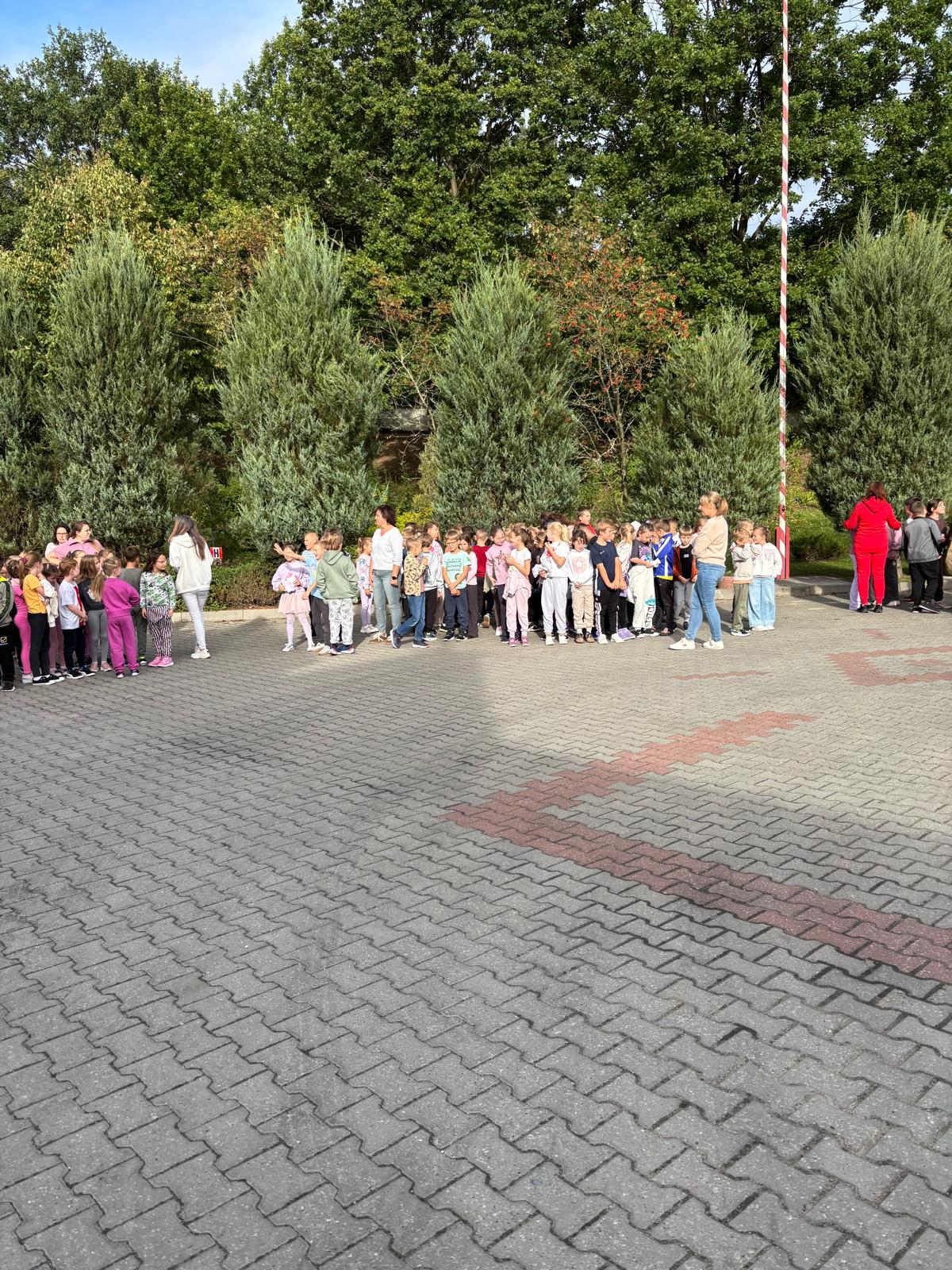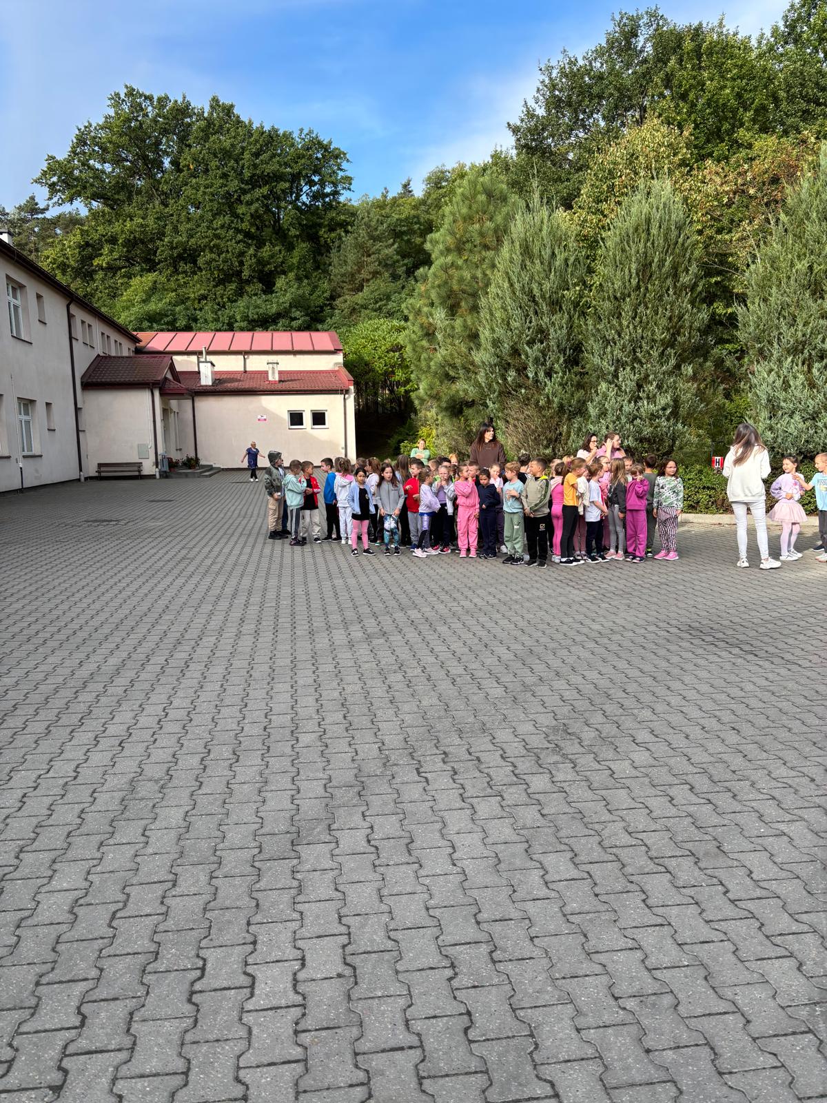 23 września o godzinie 9.00 w naszej szkole rozległ się sygnał alarmowy – rozpoczęła się próbna ewakuacja. Wspólnie ze strażą pożarną ćwiczyliśmy, jak należy zachować się w takiej sytuacji. Uczniowie szybko i spokojnie opuścili budynek, ustawiając się równiutko według klas. Pani Dyrektor Anna Mrozowska sprawdziła obecność, a następnie przekazała strażakom informację, że wszyscy są bezpieczni. Dzięki sprawnemu działaniu cała próba zakończyła się sukcesem.