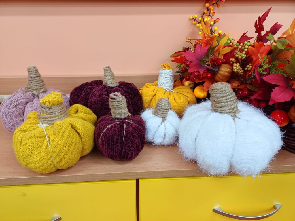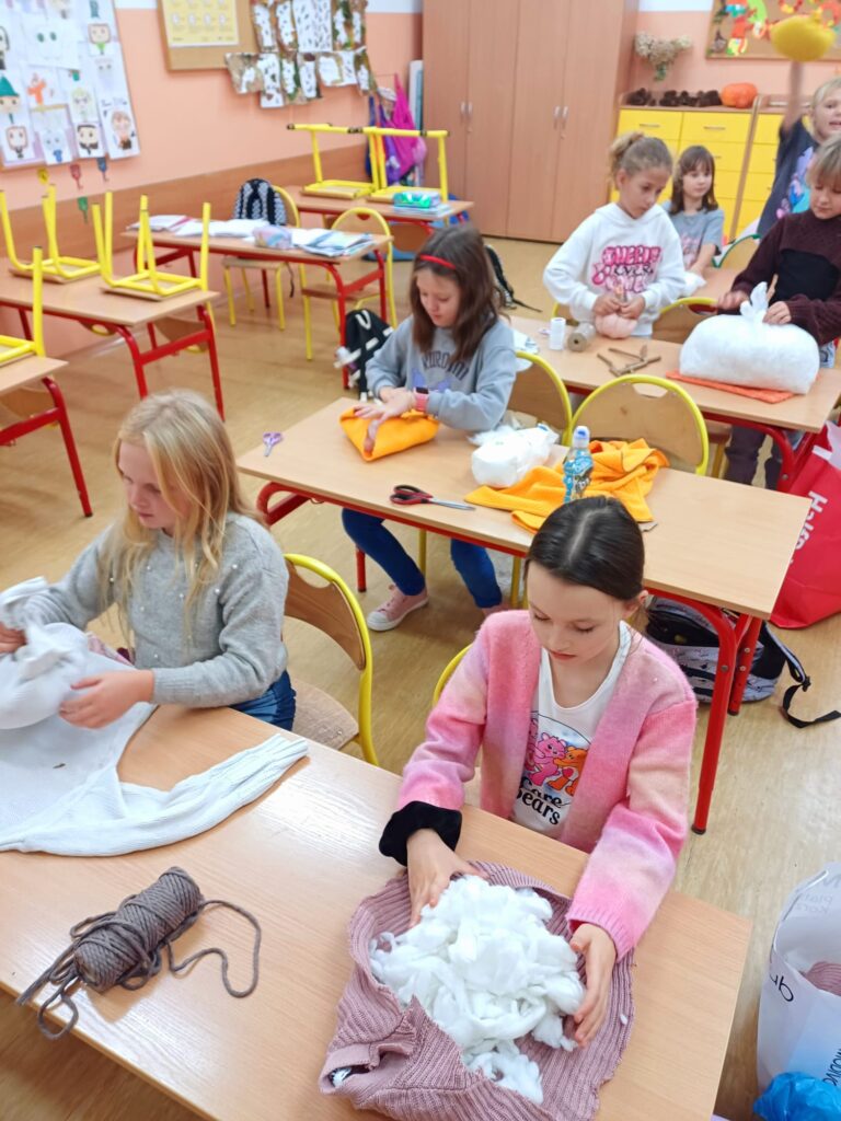 Kółko plastyczne prowadzone w naszej szkole to miejsce, w którym dzieci rozwijają swoje zdolności artystyczne i kreatywność poprzez tworzenie różnorodnych prac rękodzielniczych. Tym razem, w jesiennej atmosferze za oknem, uczniowie wykonali z niepotrzebnych swetrów piękne, dekoracyjne dynie.