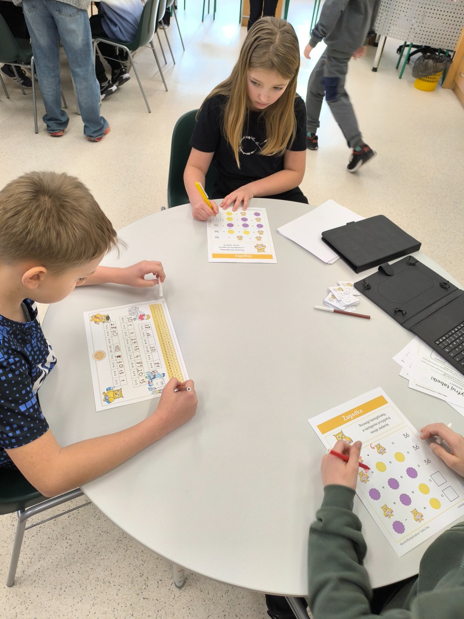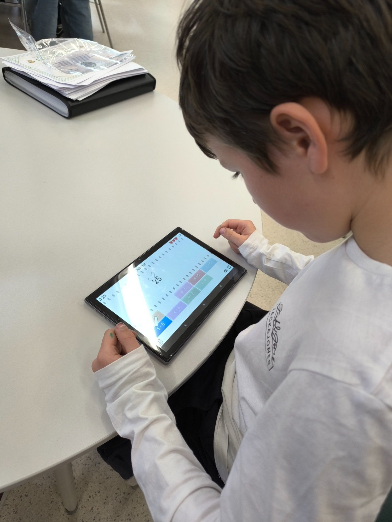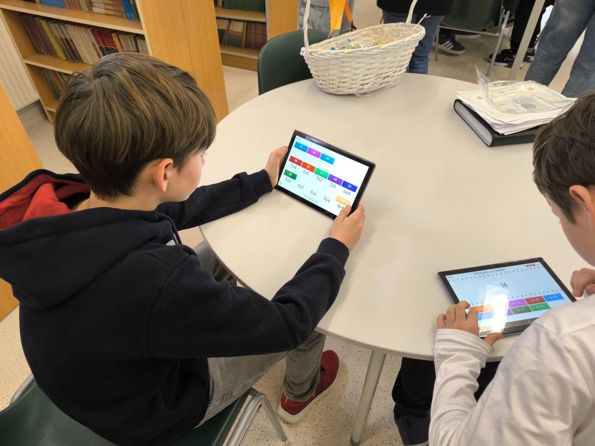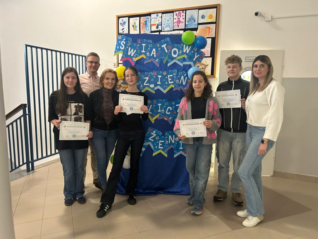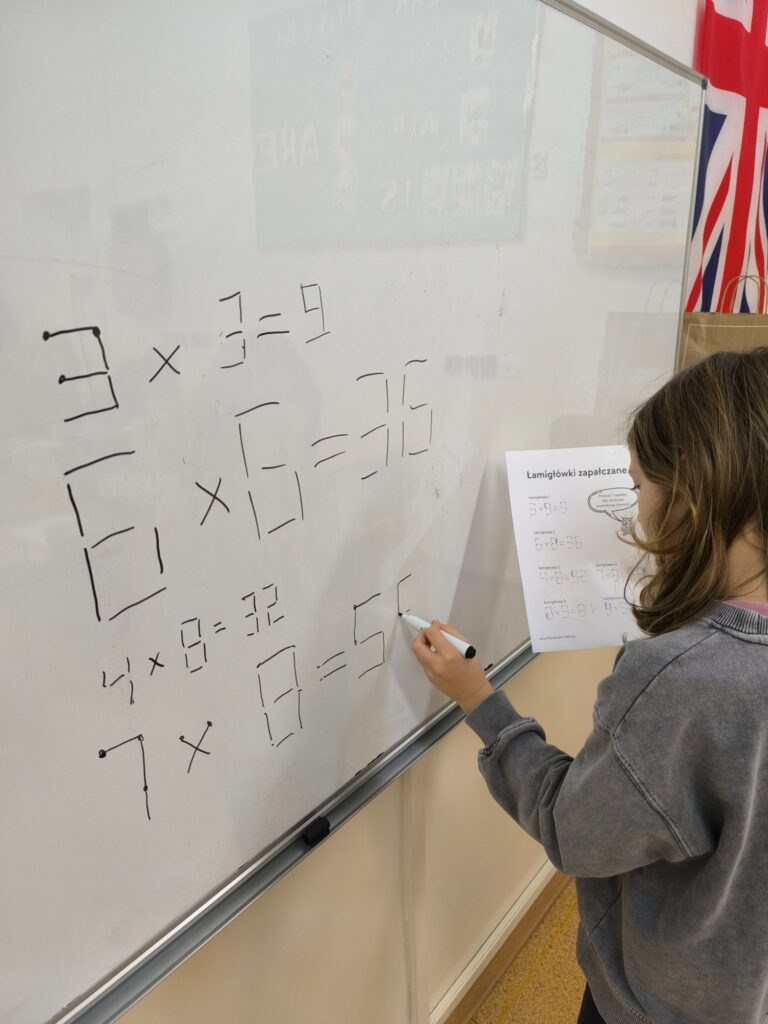 Za nami wyjątkowy dzień pełen matematycznych wyzwań i dobrej zabawy! W szkolnej bibliotece czekały na uczniów różnorodne quizy matematyczne – zarówno papierowe, jak i w wersji cyfrowej na tabletach. Każdy, kto spróbował swoich sił, mógł zdobyć… pysznego cukierka jako nagrodę za poprawne odpowiedzi! Nie zabrakło też elementu rywalizacji – uczniowie klas 7 i 8 pełnili rolę „egzaminatorów” i odwiedzali klasy trzecie, sprawdzając znajomość tabliczki mnożenia w ramach specjalnych patroli matematycznych. Trzecioklasiści spisali się na medal!
