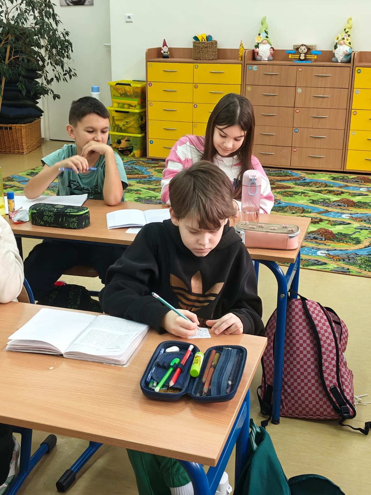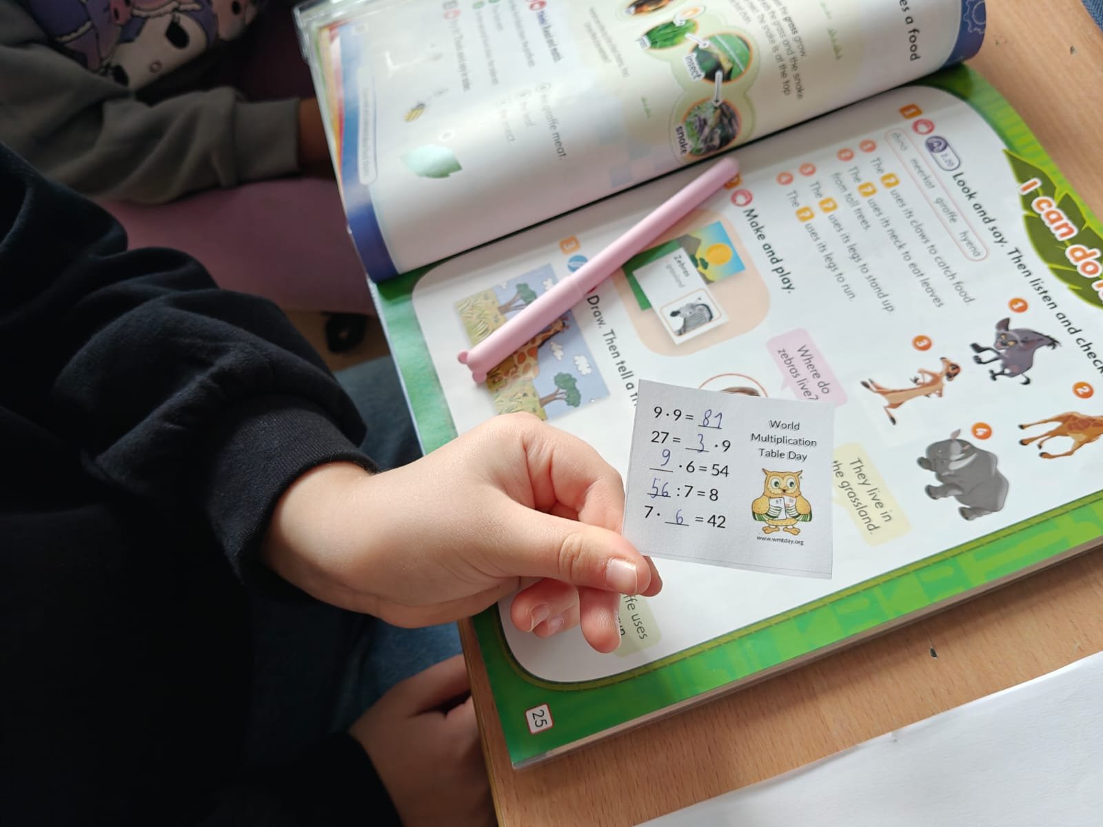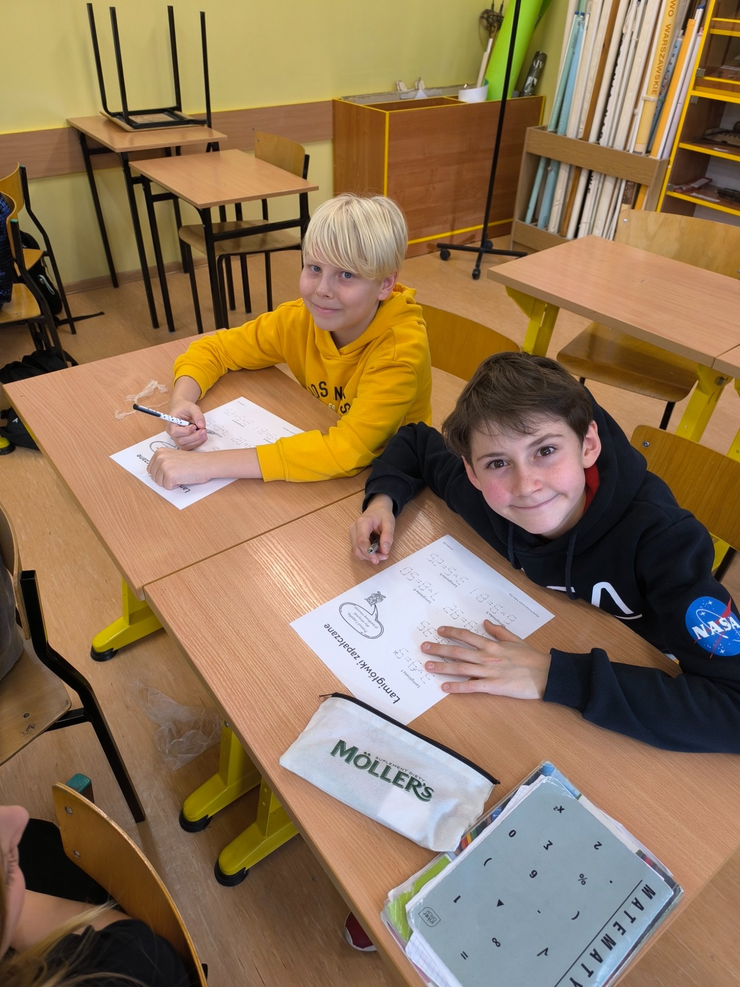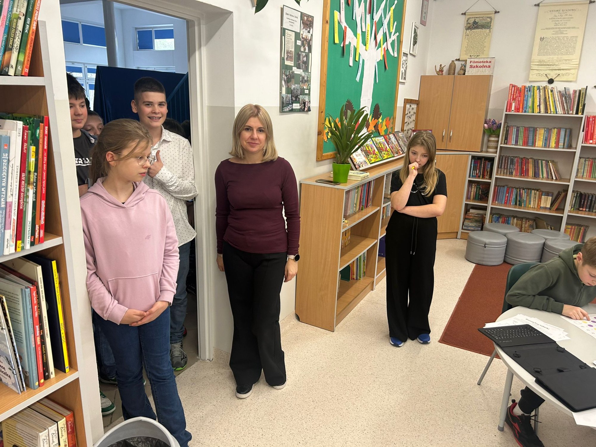 Za nami wyjątkowy dzień pełen matematycznych wyzwań i dobrej zabawy! W szkolnej bibliotece czekały na uczniów różnorodne quizy matematyczne – zarówno papierowe, jak i w wersji cyfrowej na tabletach. Każdy, kto spróbował swoich sił, mógł zdobyć… pysznego cukierka jako nagrodę za poprawne odpowiedzi! Nie zabrakło też elementu rywalizacji – uczniowie klas 7 i 8 pełnili rolę „egzaminatorów” i odwiedzali klasy trzecie, sprawdzając znajomość tabliczki mnożenia w ramach specjalnych patroli matematycznych. Trzecioklasiści spisali się na medal!