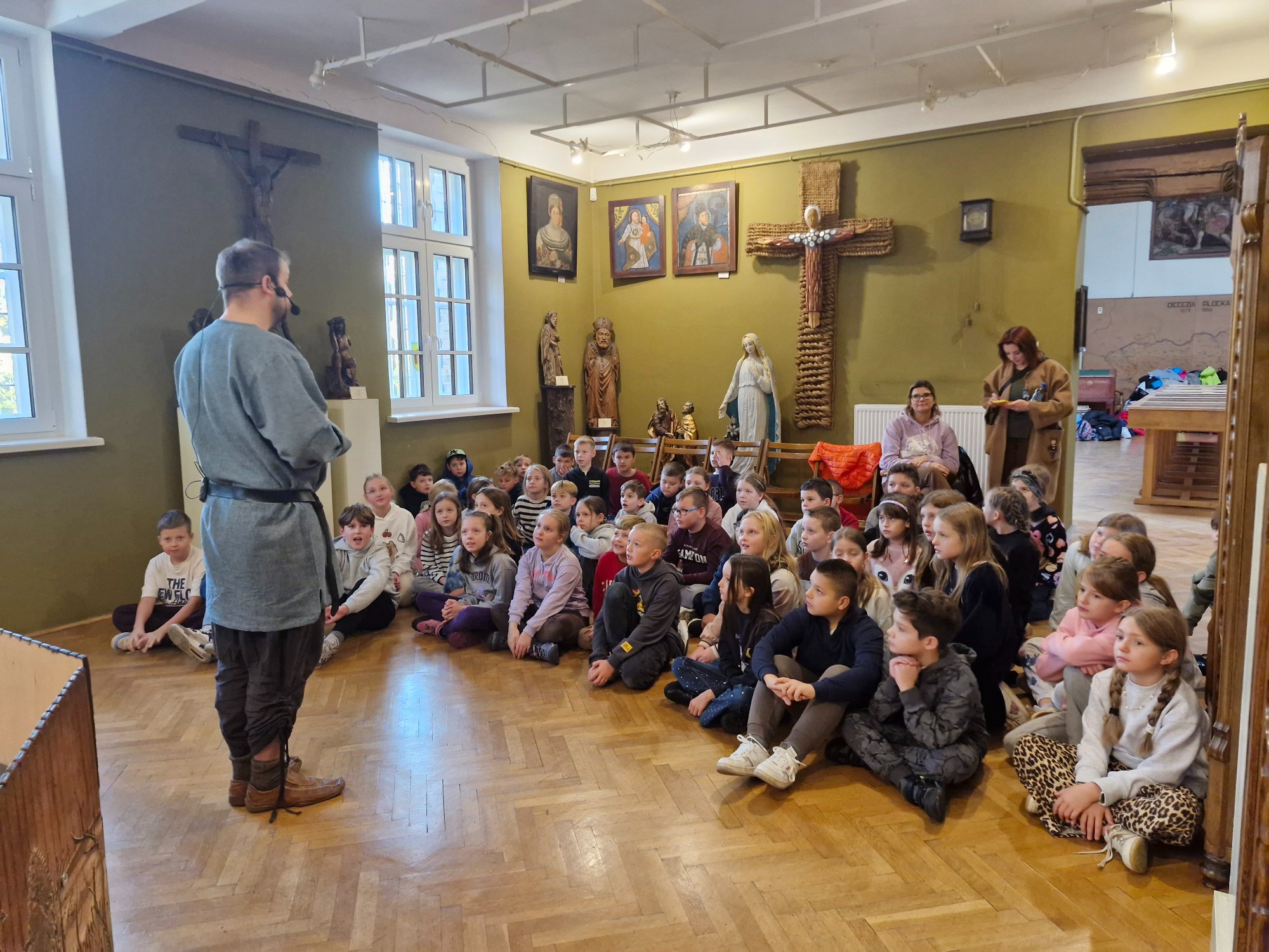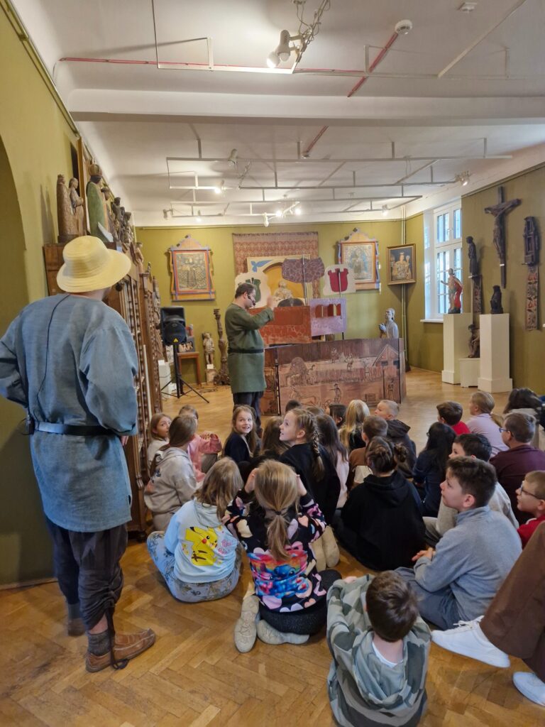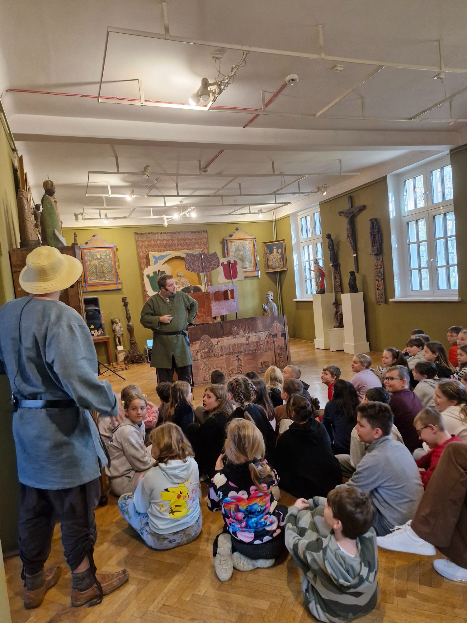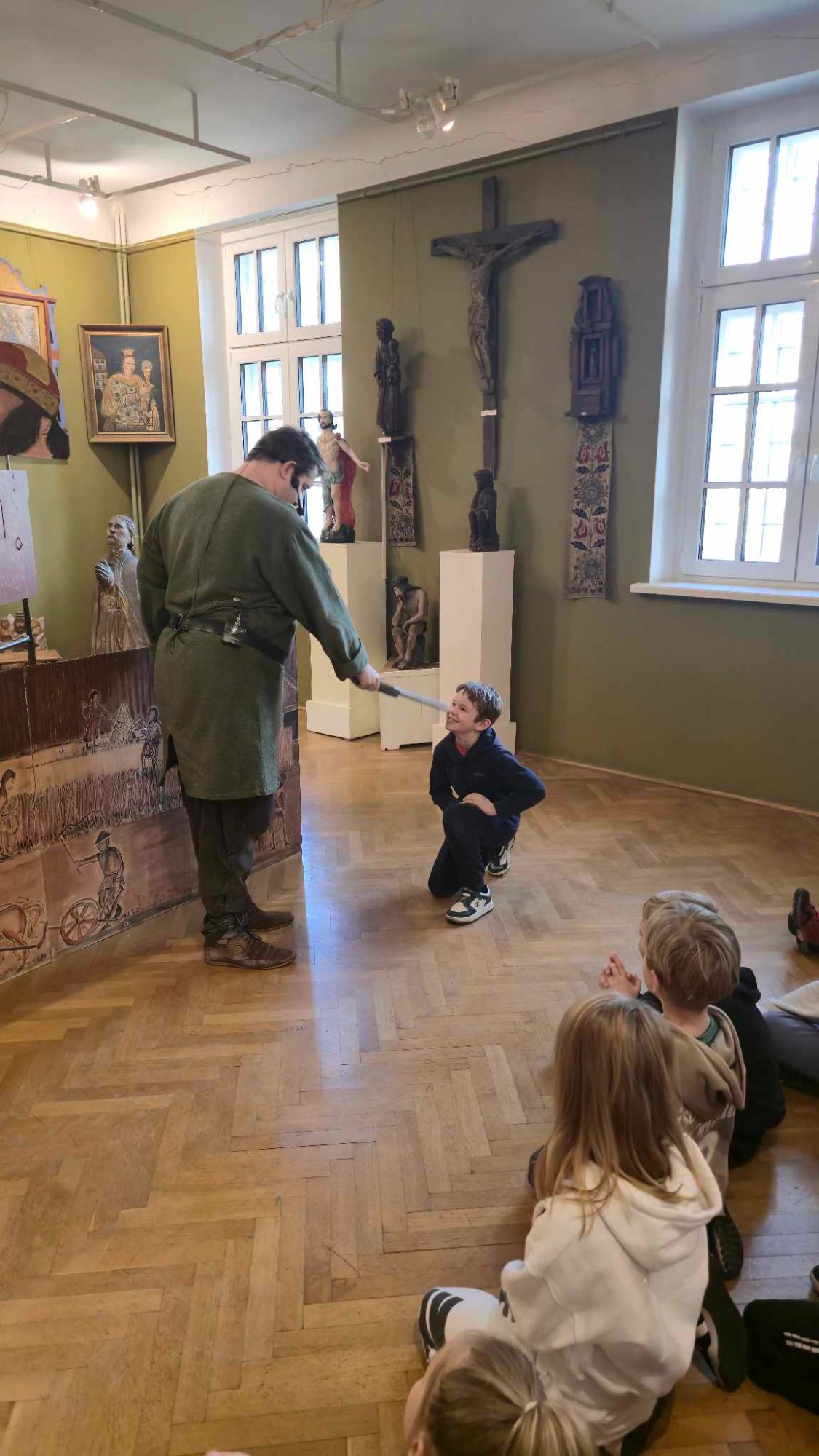 Na początek odwiedziliśmy Muzeum Diecezjalne, gdzie odbyła się ciekawa lekcja historii i mogliśmy zobaczyć wiele niezwykłych eksponatów. Potem obejrzeliśmy spektakl Teatru Form Wielu „O początkach rycerstwa” – nasze brzuchy pękały od śmiechu.