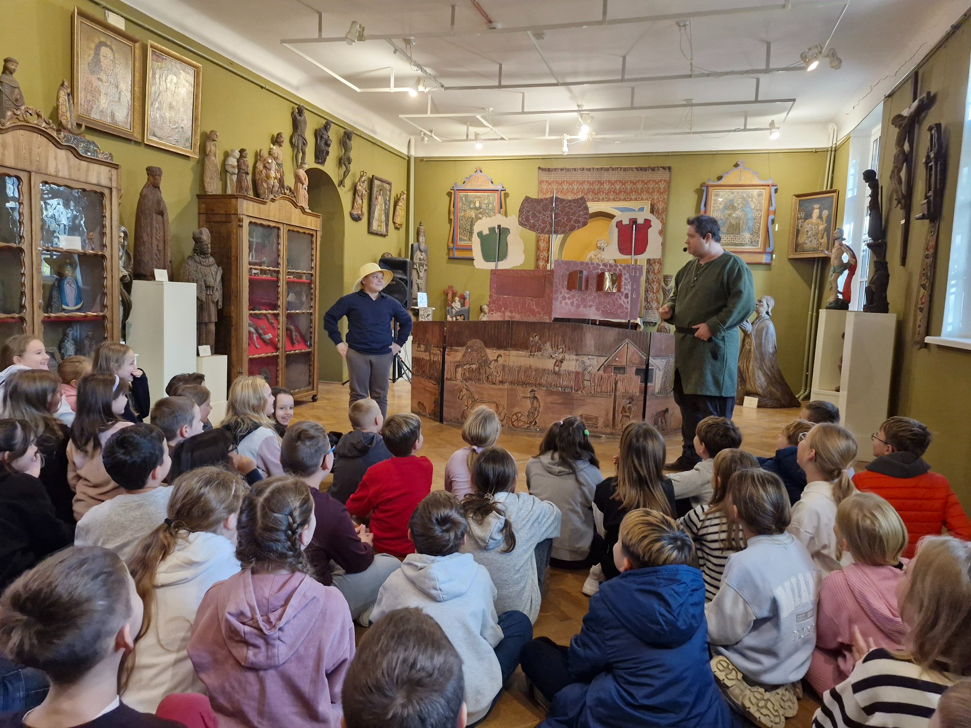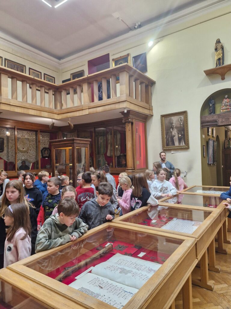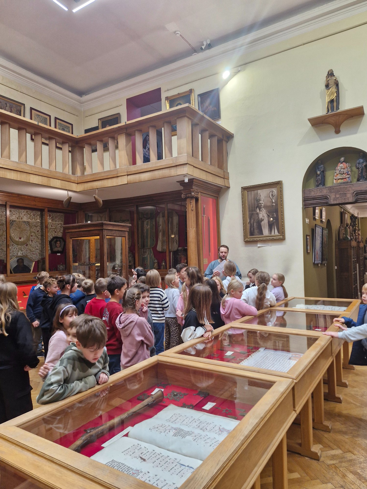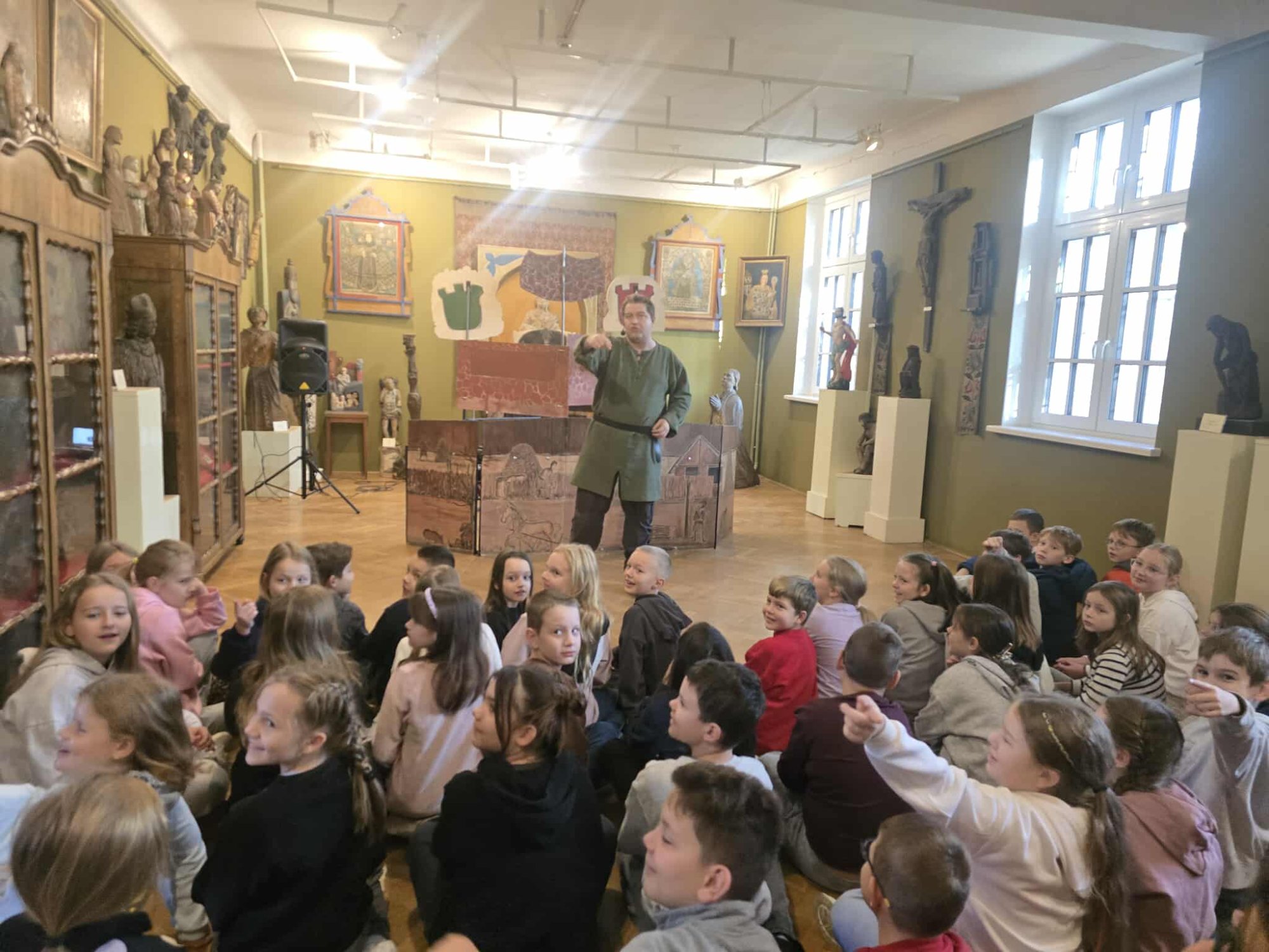 Na początek odwiedziliśmy Muzeum Diecezjalne, gdzie odbyła się ciekawa lekcja historii i mogliśmy zobaczyć wiele niezwykłych eksponatów. Potem obejrzeliśmy spektakl Teatru Form Wielu „O początkach rycerstwa” – nasze brzuchy pękały od śmiechu.
