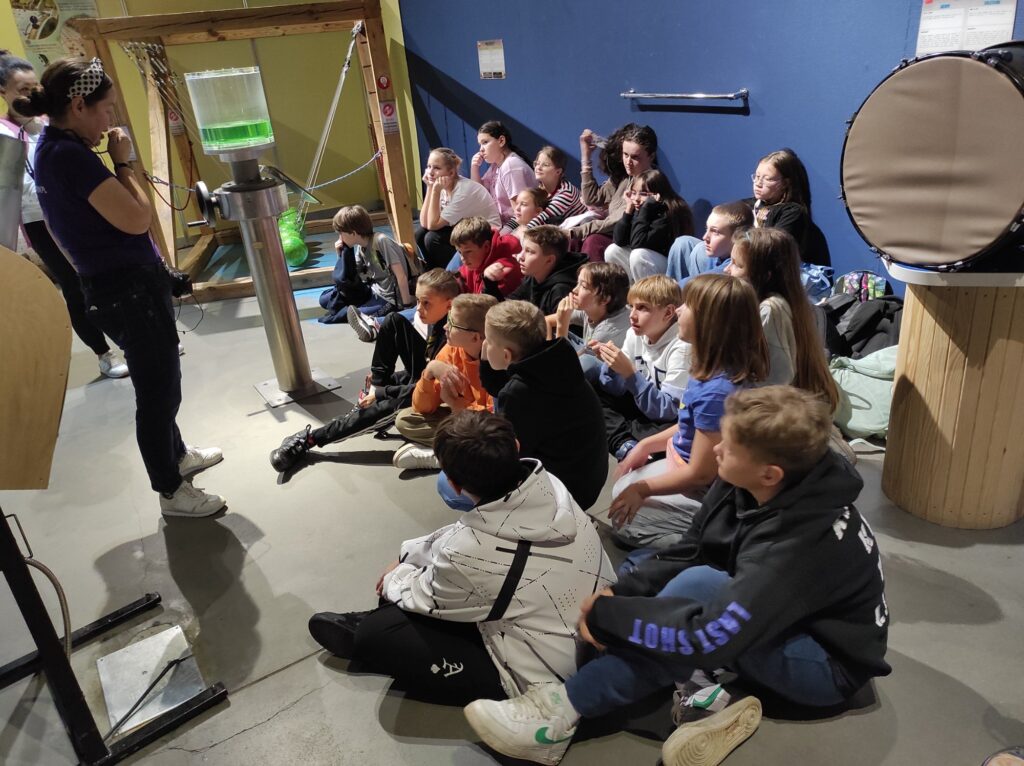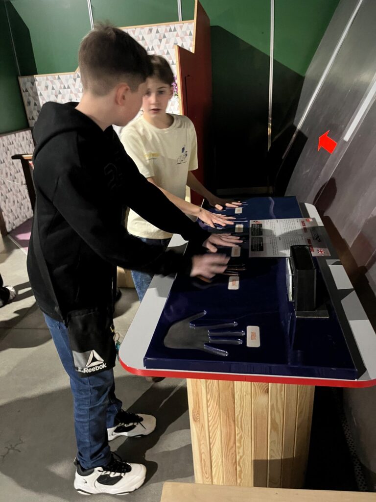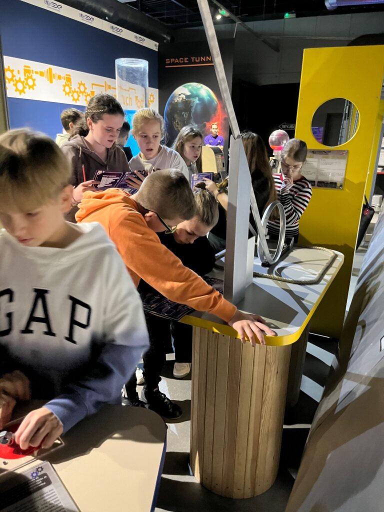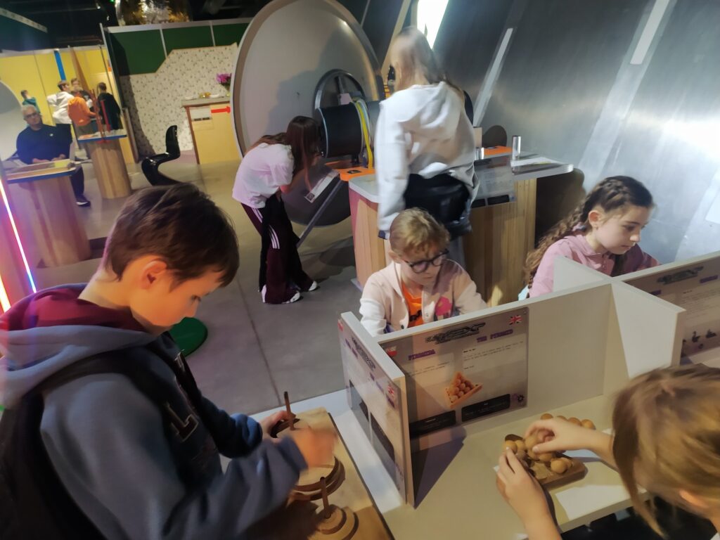 Kolejnym etapem wycieczki było Experymentarium – wystawa interaktywna, która wciągnęła wszystkich w świat nauki. Uczniowie mogli samodzielnie przeprowadzać doświadczenia, rozwiązywać zagadki Einsteina i przekonać się, że nauka może być naprawdę fascynująca.