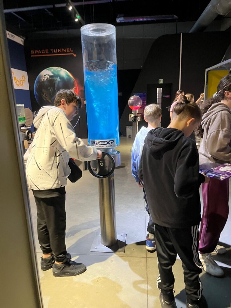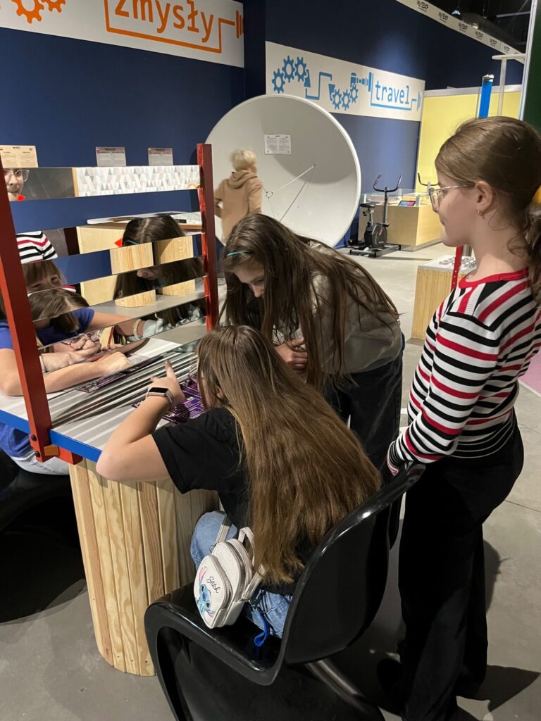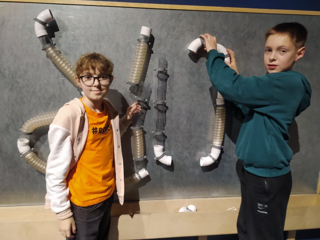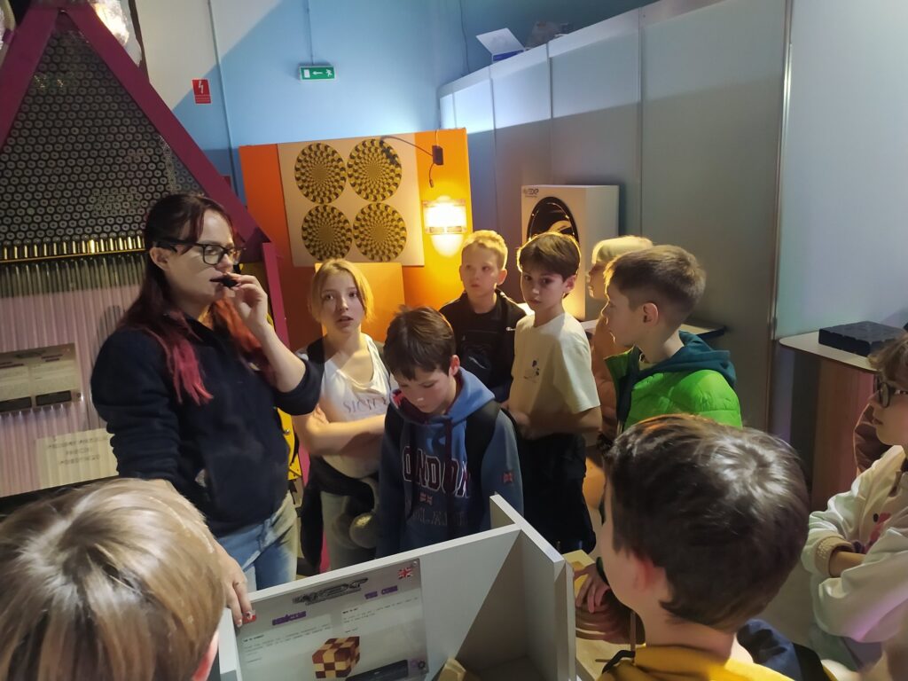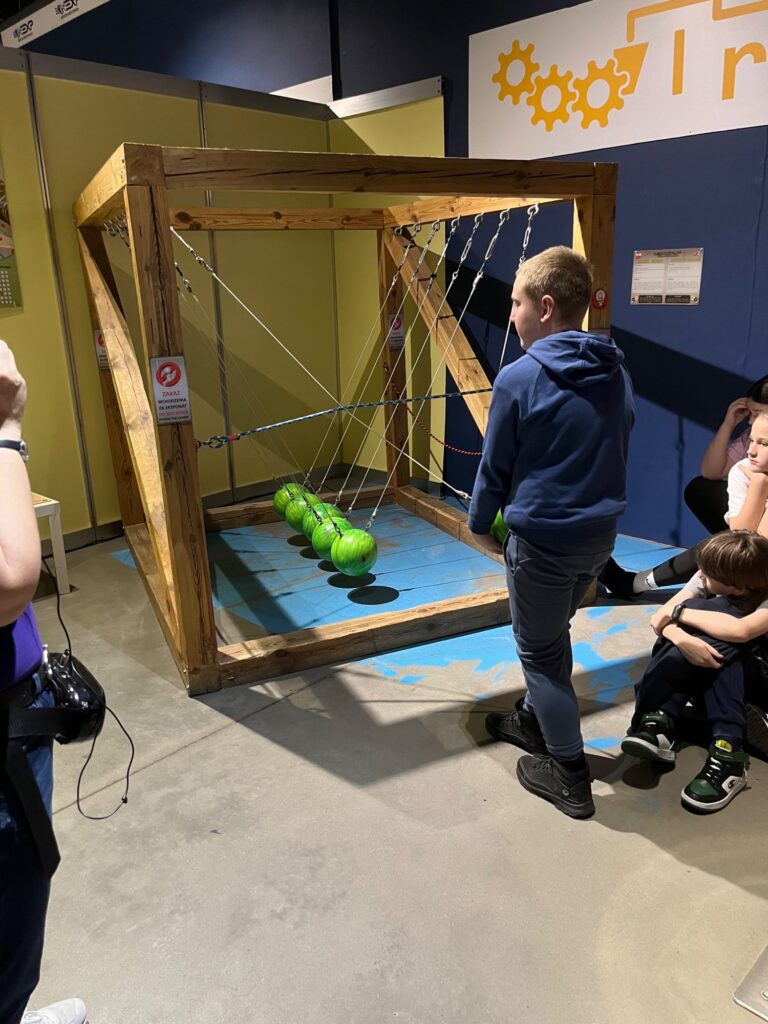 Kolejnym etapem wycieczki było Experymentarium – wystawa interaktywna, która wciągnęła wszystkich w świat nauki. Uczniowie mogli samodzielnie przeprowadzać doświadczenia, rozwiązywać zagadki Einsteina i przekonać się, że nauka może być naprawdę fascynująca.