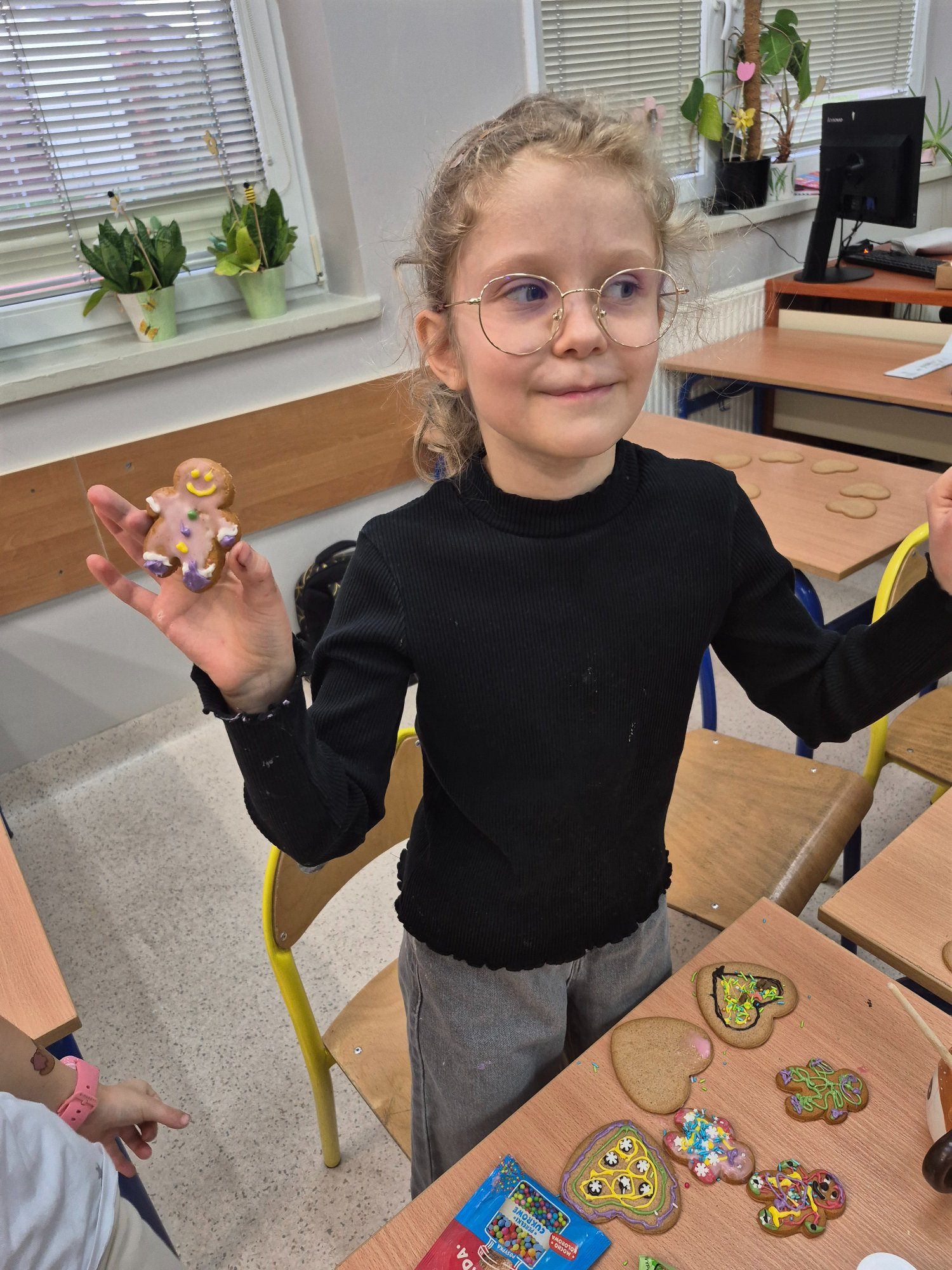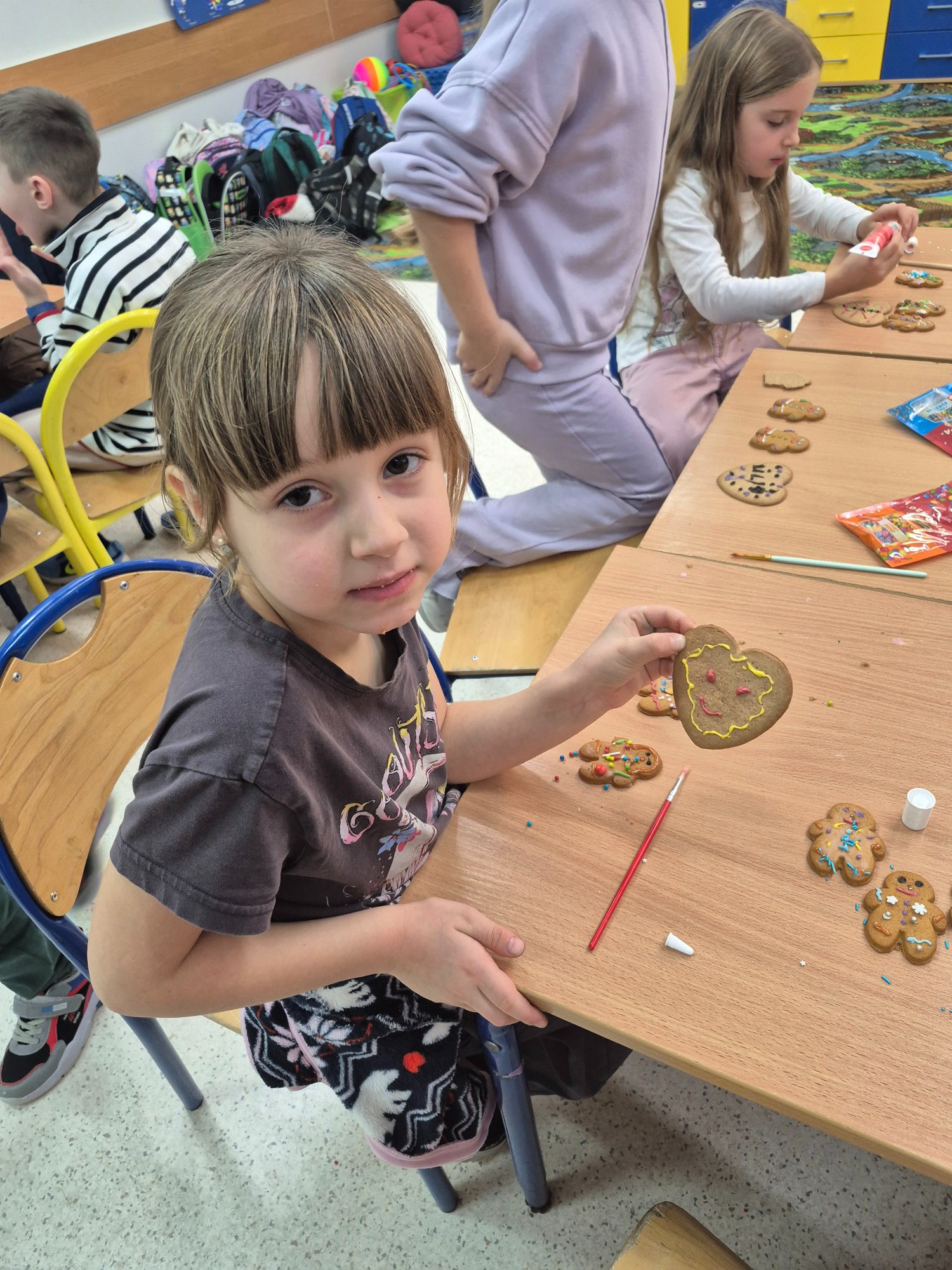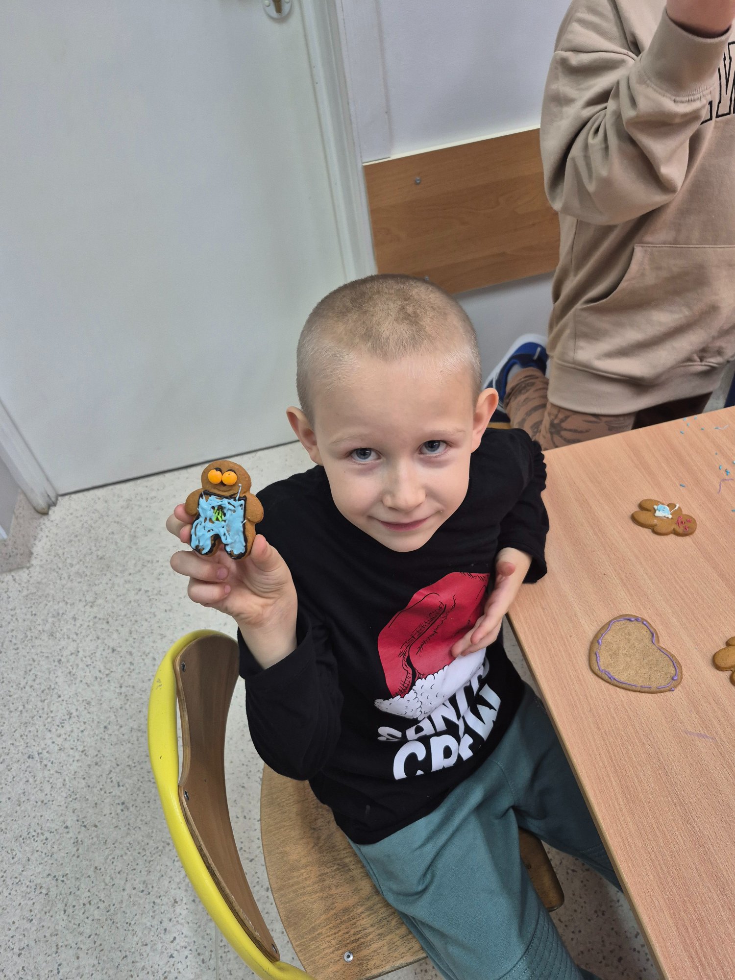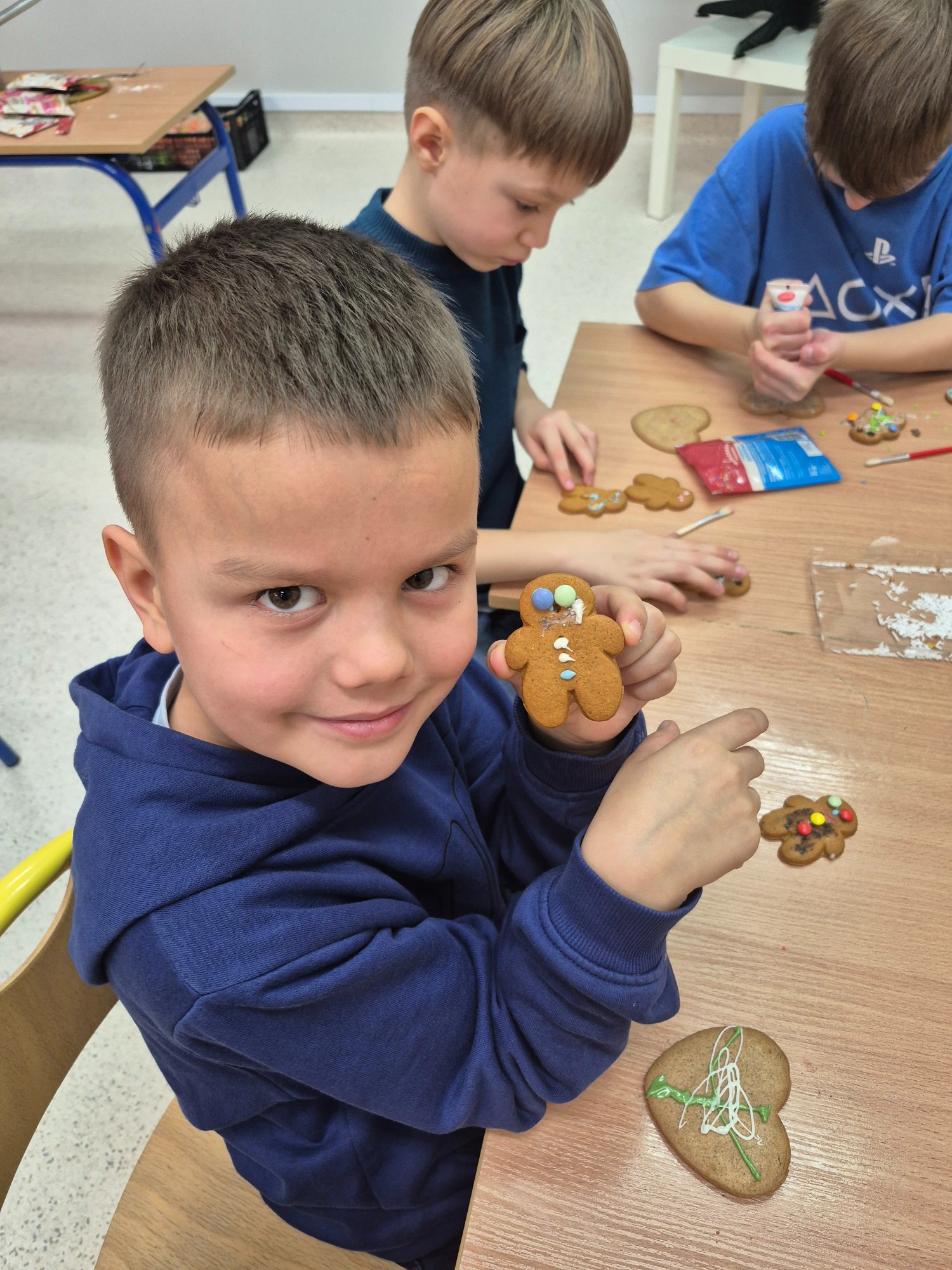 Dzieci własnoręcznie ozdabiały pierniczki, tworząc ciasteczkowe ludziki z lukru, kolorowych pisaków i barwnych posypek. Kreatywność nie miała granic — powstały prawdziwe piernikowe dzieła sztuki 🤎✨ Nie zabrakło też pierniczków przygotowanych specjalnie dla mamy i taty 💕