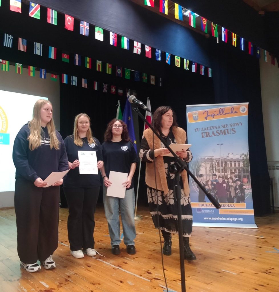 Z dumą informujemy, że uczniowie klas ósmych naszej szkoły wzięli udział w Międzyszkolnym Konkursie Profilaktycznym „Współczesne zagrożenia zdrowia”, który odbył się dnia 08.12.2025r. w Liceum Ogólnokształcącym z Oddziałami Dwujęzycznymi im. Władysława Jagiełły w Płocku. Naszą szkołę reprezentowały trzy 3-osobowe drużyny z klas ósmych przygotowane przez panią pedagog Monikę Wojtylak. Wykazały się one dużą wiedzą i zaangażowaniem w tematyce związanej z profilaktyką zdrowotną i zagrożeniami cywilizacyjnymi. Po zaciętej rywalizacji udało nam się osiągnąć znaczący sukces! Zajęliśmy III miejsce w kategorii szkół podstawowych!