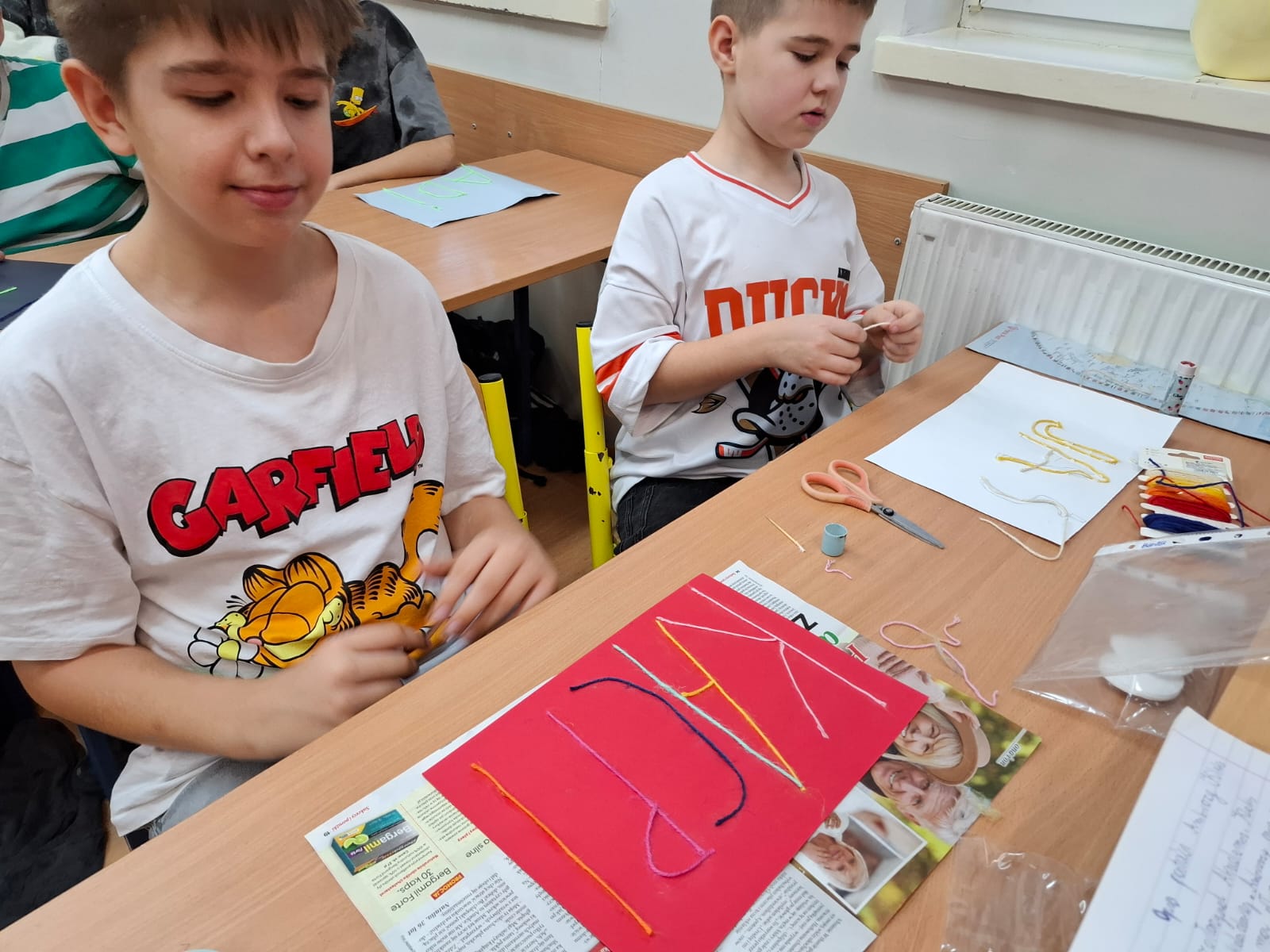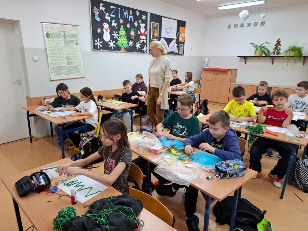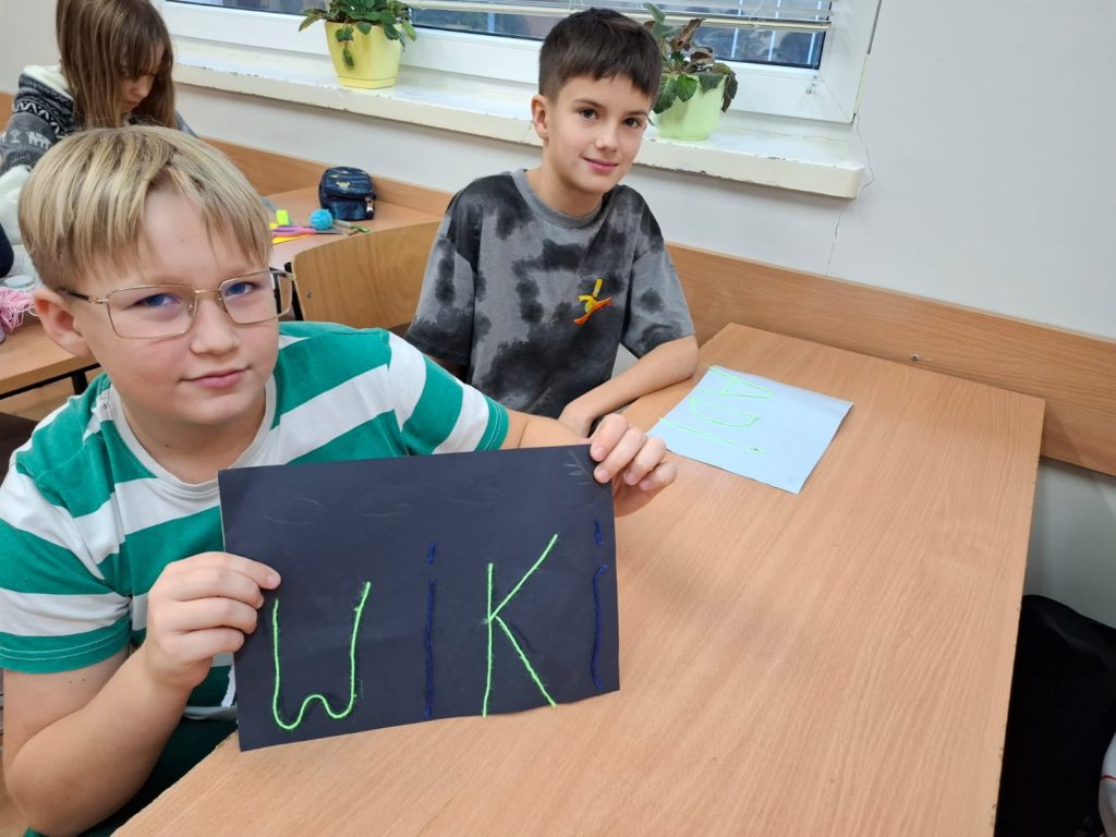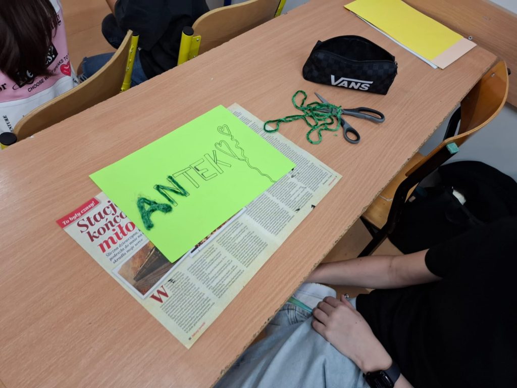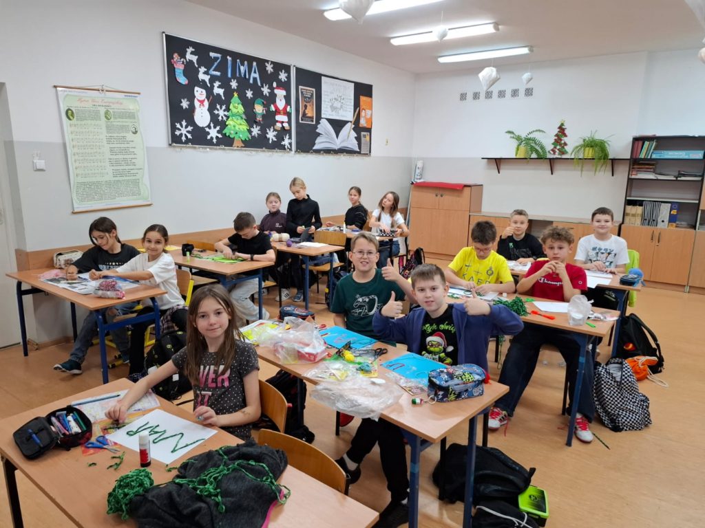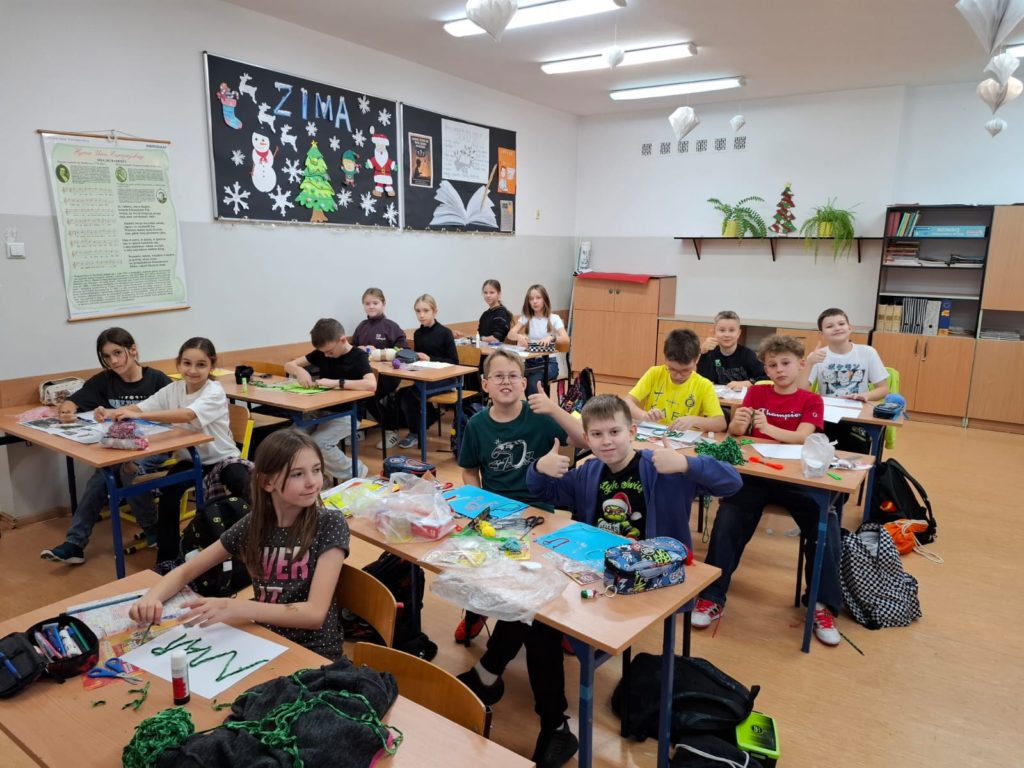 Były już lekcje kleksografii, zatem czas na przędzenie liter. Na zajęciach języka polskiego czwartoklasiści mieli możliwość po raz kolejny przenieść się do baśniowego świata Akademii pana Kleksa. Wystarczyła znajomość lektury, odpowiednie rekwizyty i ….wyobraźnia. Dzięki temu odbyła się lekcja przędzenia liter.