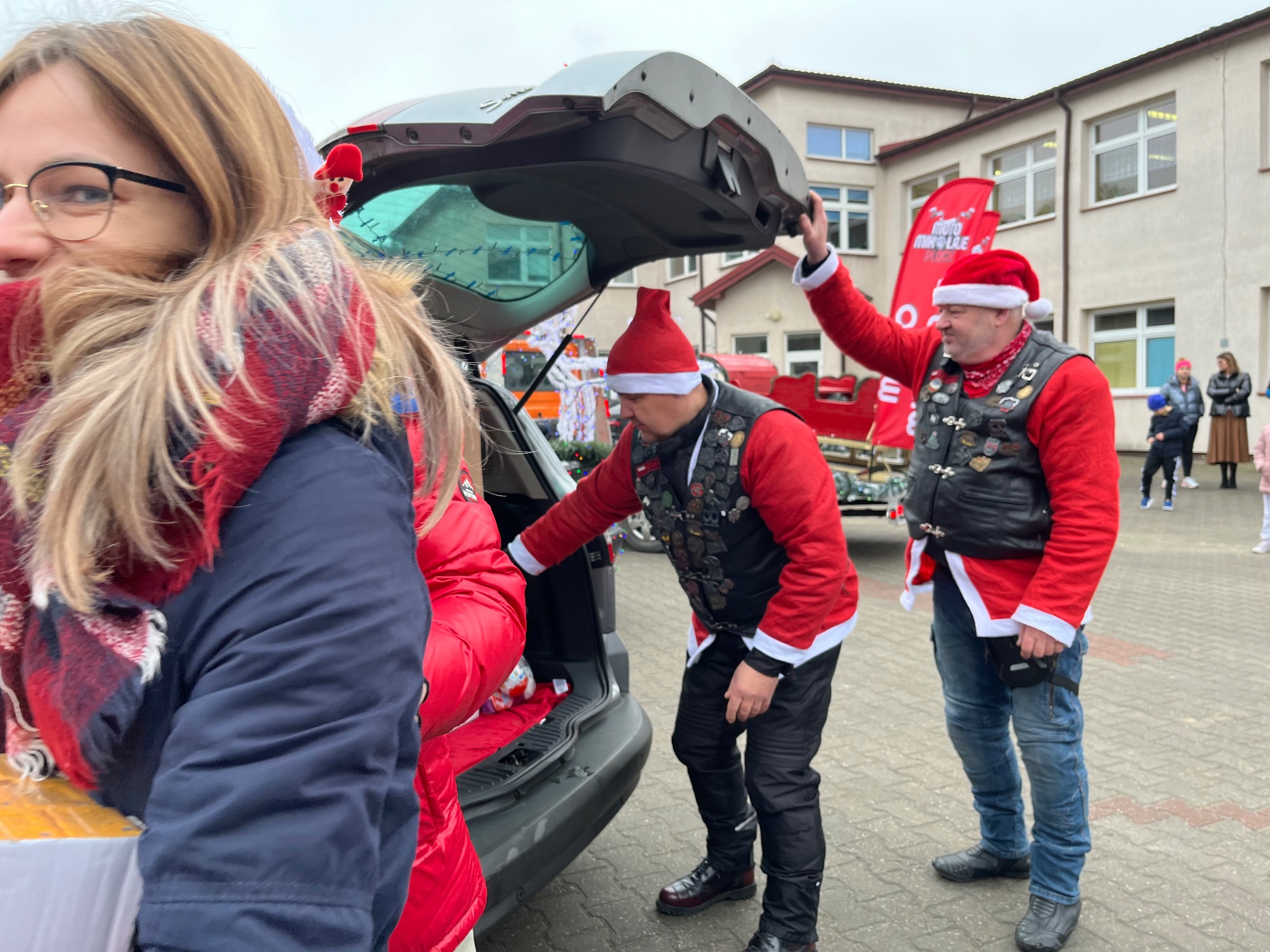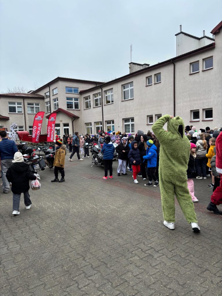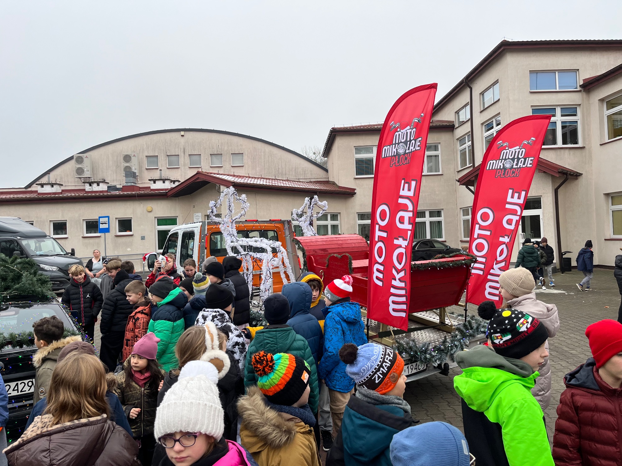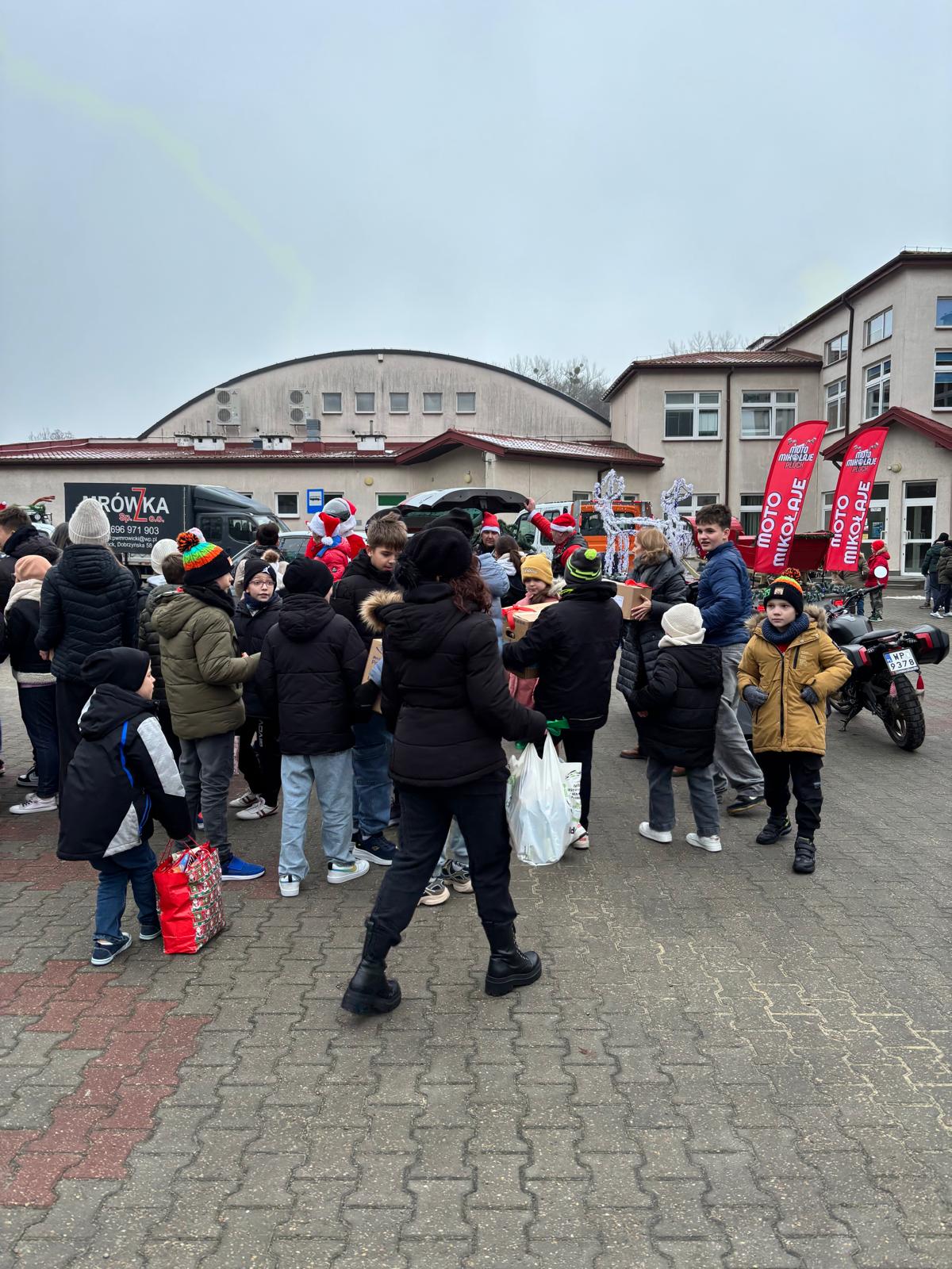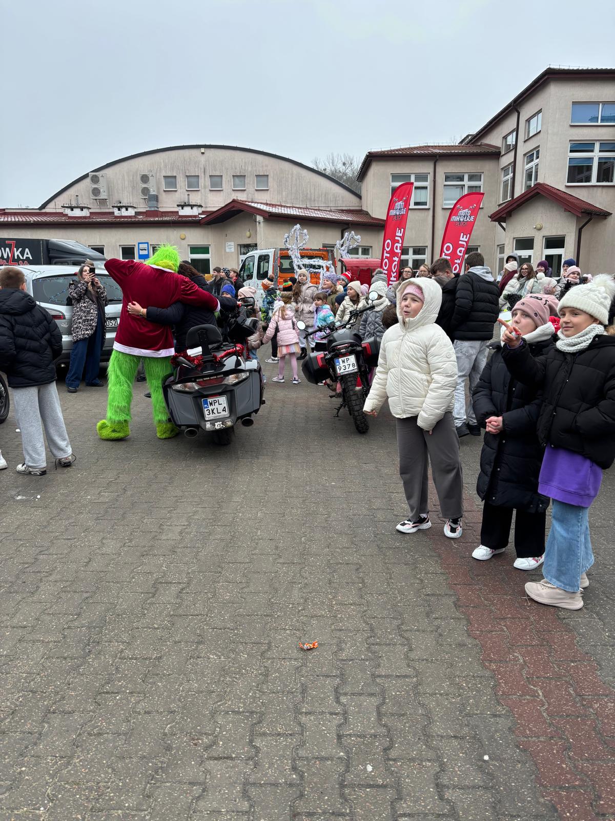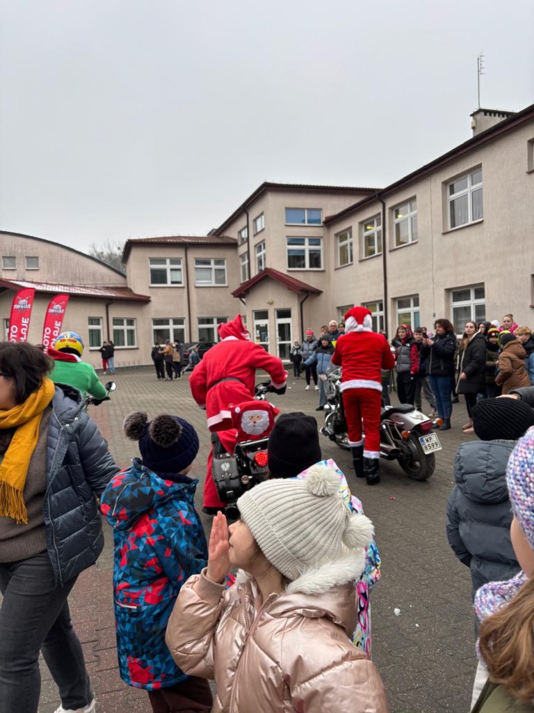 Dziś w naszej szkole wydarzyło się coś wyjątkowego – odwiedzili nas MotoMikołaje z Płocka! Przyjechali na pięknie udekorowanych motocyklach, a wśród nich był również samochód rozświetlony świątecznymi lampkami oraz laweta z saniami Mikołaja (bo śnieg niestety się roztopił). Wprowadziło to wszystkich w prawdziwie świąteczny nastrój!