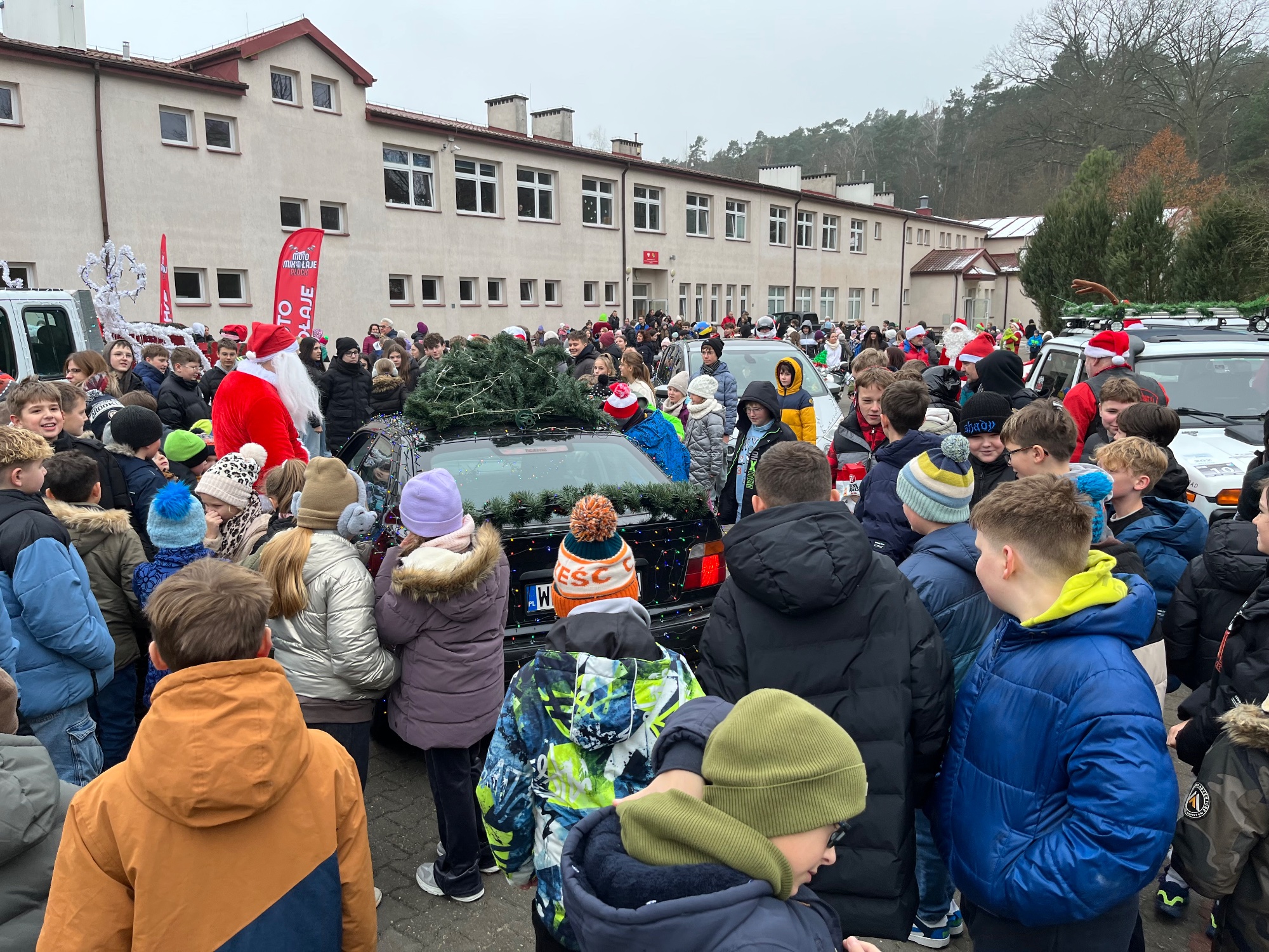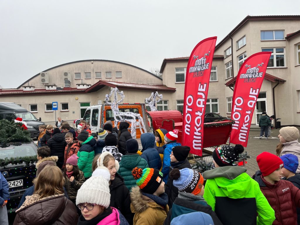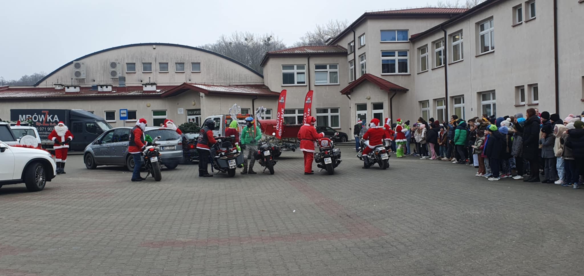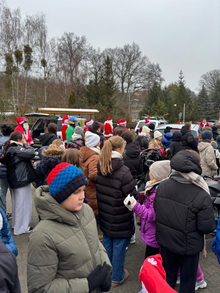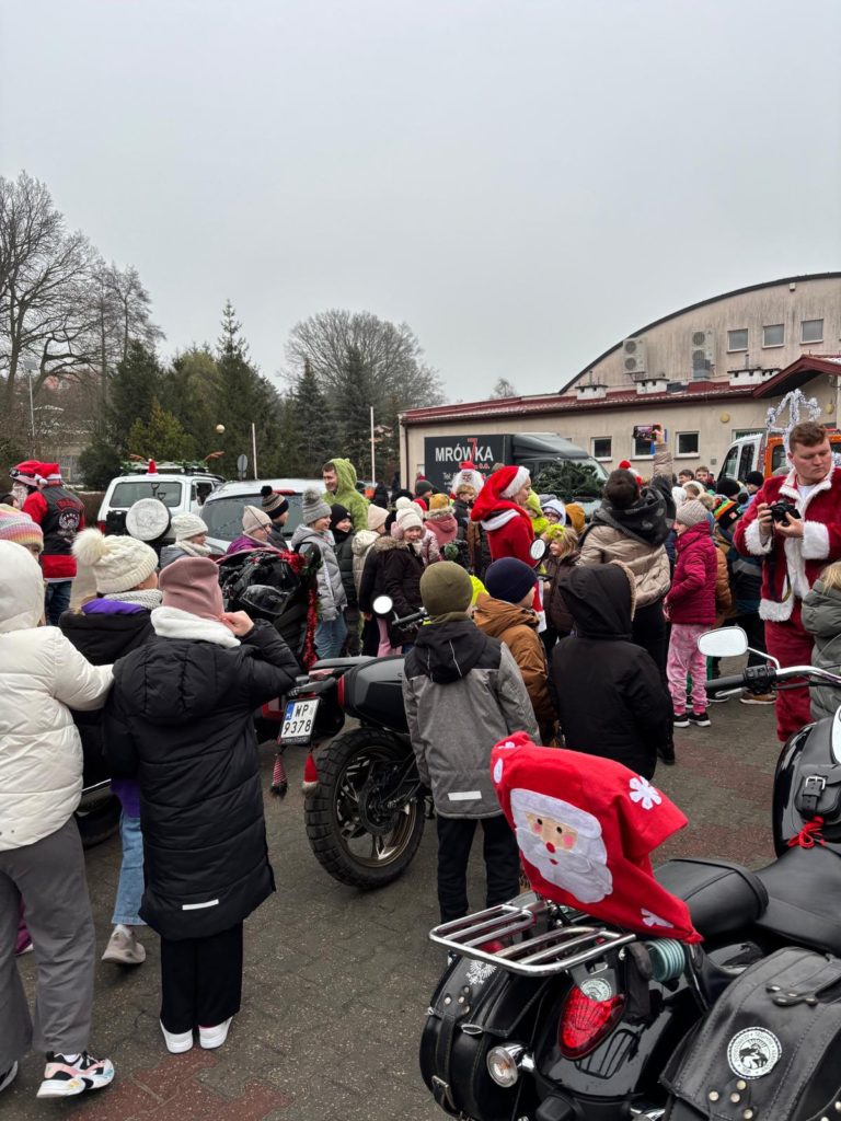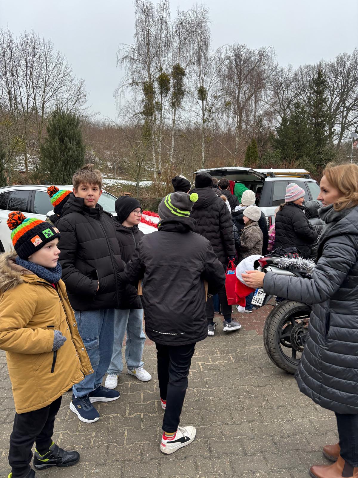 Dziś w naszej szkole wydarzyło się coś wyjątkowego – odwiedzili nas MotoMikołaje z Płocka! Przyjechali na pięknie udekorowanych motocyklach, a wśród nich był również samochód rozświetlony świątecznymi lampkami oraz laweta z saniami Mikołaja (bo śnieg niestety się roztopił). Wprowadziło to wszystkich w prawdziwie świąteczny nastrój!