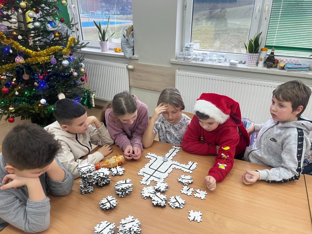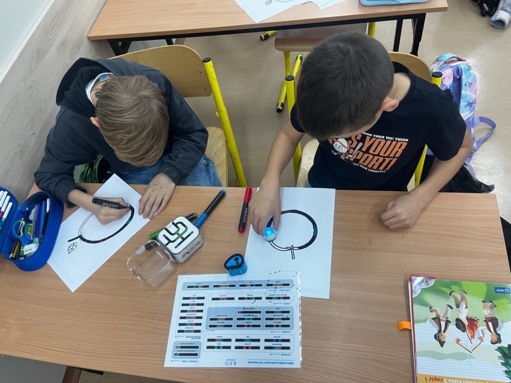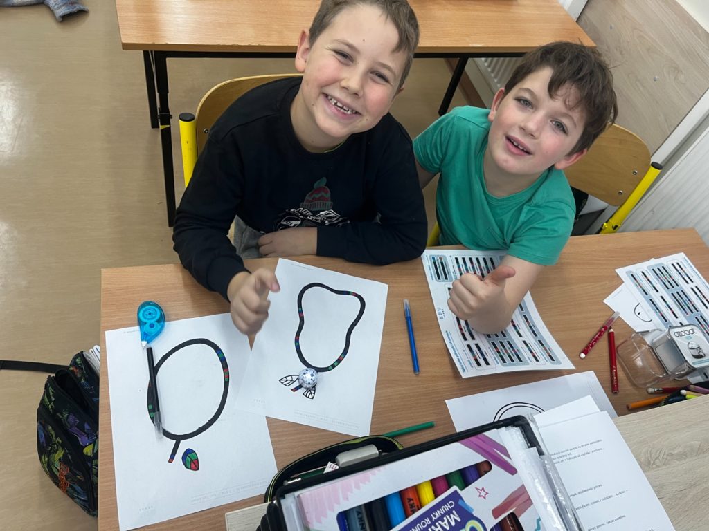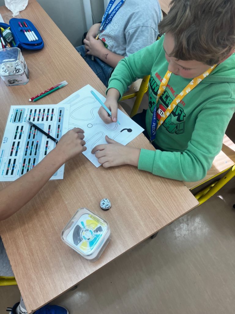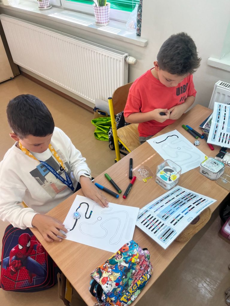 Na zajęciach dodatkowych „Koło Ozoboty” dzieci wkraczają w fascynujący świat programowania i kreatywnego myślenia. Uczniowie samodzielnie rysują kolorowe mapy i trasy, po których poruszają się inteligentne robociki Ozoboty. Poprzez odpowiednie kody kolorystyczne uczą się podstaw programowania – zarówno indywidualnie, jak i podczas pracy w grupach.