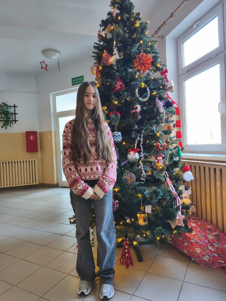Marietta to osoba, która wyróżnia się w naszej społeczności szkolnej nie tylko zmysłem estetycznym, ale także wysokim poziomem intelektualnym. Jej talent i zaangażowanie sprawiły, że w tym roku to właśnie jej projekt stał się częścią oficjalnych życzeń świątecznych Gminy Słupno. Kartka z pracą Marietty trafiła do wszystkich mieszkańców naszej gminy, stając się pięknym symbolem świątecznej atmosfery i lokalnej kreatywności.