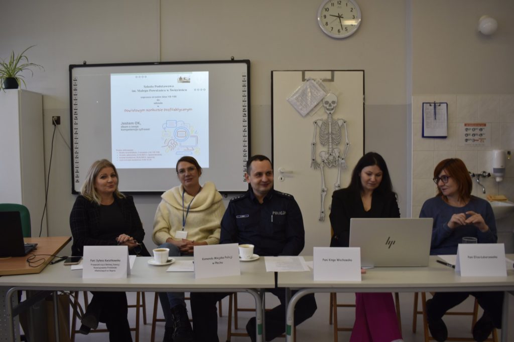 Z ogromną radością informujemy, że uczniowie klasy 7a przygotowani do konkursu przez pedagoga szkolnego panią Monikę Wojtylak zajęli I miejsce w konkursie profilaktycznym „Jestem OK, dbam o kompetencje cyfrowe!”, który organizowany był przez Szkołę Podstawową im. Małego Powstańca w Święcieńcu.