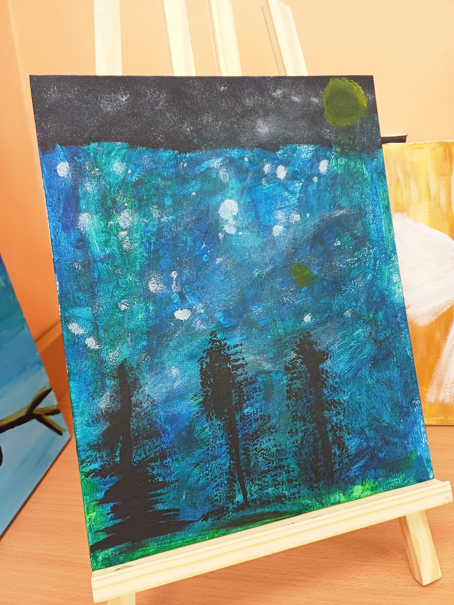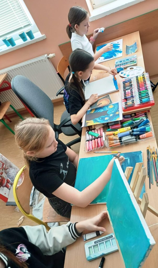 Na ostatnim przed feriami kółku plastycznym szkolna pracownia zamieniła się w prawdziwe atelier artystyczne. Nasi uczniowie, z ogromnym zaangażowaniem i radością, podążali śladami Leonarda da Vinci, Pabla Picassa oraz innych wielkich mistrzów malarstwa. Każde pociągnięcie pędzla było wyrazem dziecięcej wyobraźni, kreatywności i odwagi twórczej. Na płótnach, przy pomocy farb, powstały prawdziwe arcydzieła, które zachwycają kolorami i oryginalnością. Zapraszamy do obejrzenia efektów tej niezwykłej artystycznej przygody.