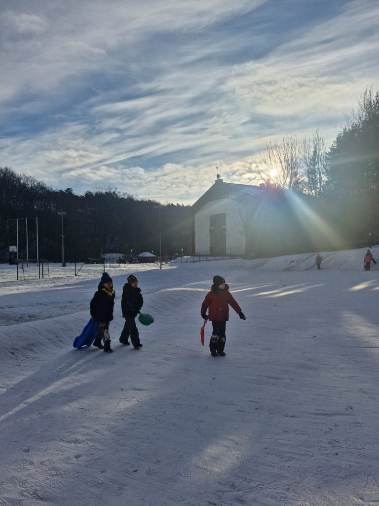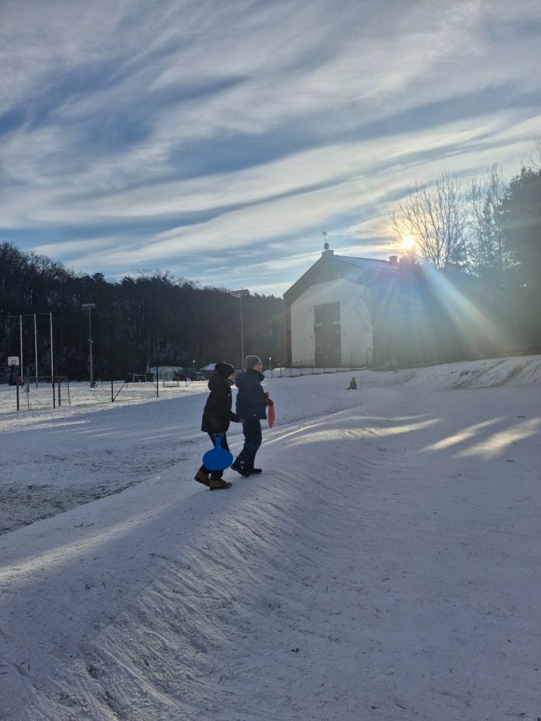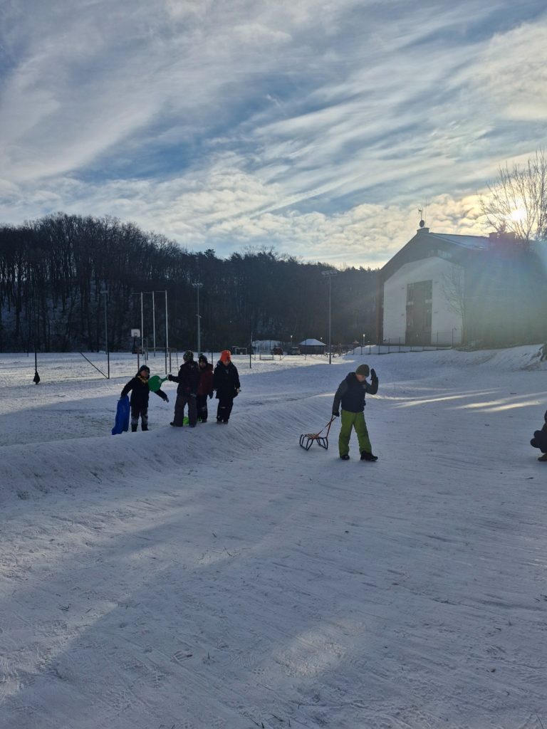 Śnieżna aura stworzyła idealne warunki do aktywności na świeżym powietrzu, z których chętnie korzystają uczniowie – i nie tylko. Zajęcia wychowania fizycznego często odbywają się na śniegu, gdzie dzieci biorą udział w radosnych zabawach ruchowych, rozwijając sprawność, hartując organizm i czerpiąc mnóstwo radości z zimy.