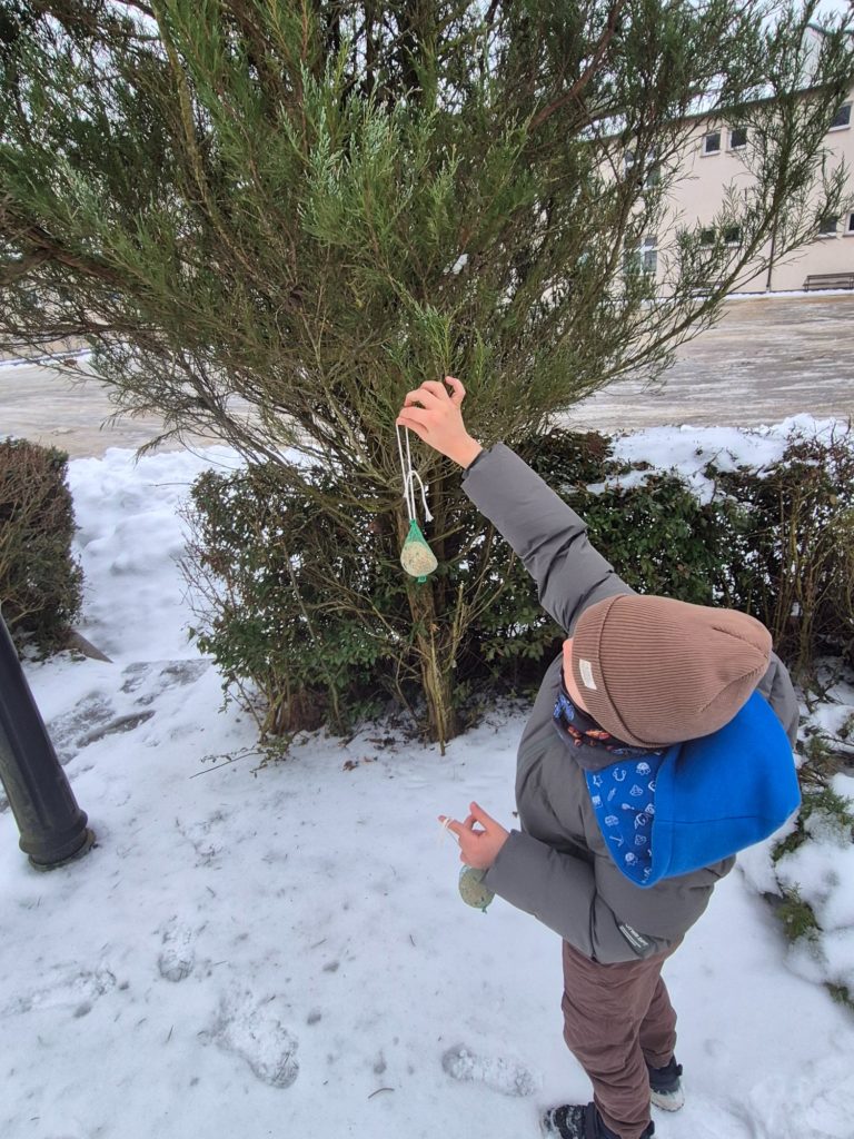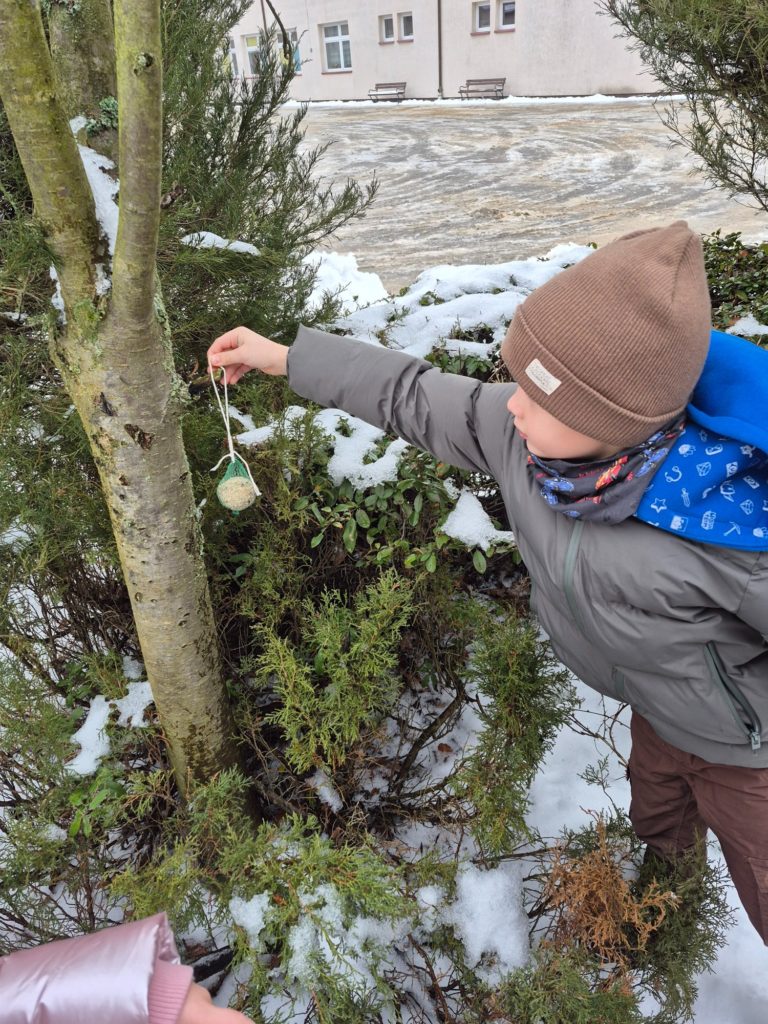 W okresie zimowym uczniowie aktywnie dokarmiają ptaki, dbając o ich bezpieczeństwo i przetrwanie w trudnych warunkach. 🌨️❄️