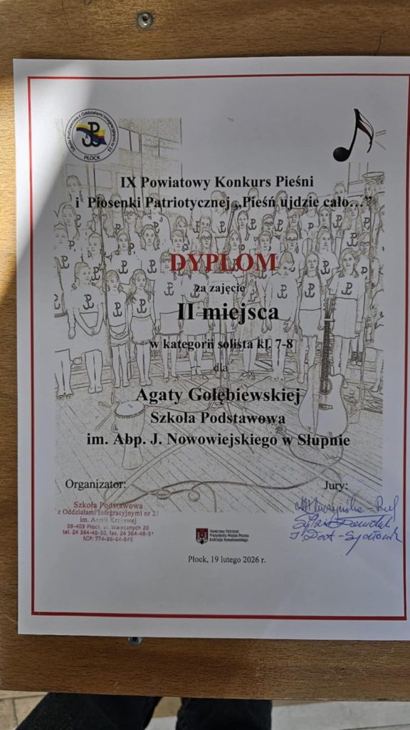 Za nami kolejna edycja Powiatowego Konkursu Pieśni Patriotycznej „Pieśń ujdzie cało”, w którym jak co roku nie mogło zabraknąć reprezentantek naszej szkoły. Z dumą informujemy, że uczennice Szkoły Podstawowej w Słupnie zaprezentowały się znakomicie, zdobywając wysokie miejsca w swoich kategoriach.