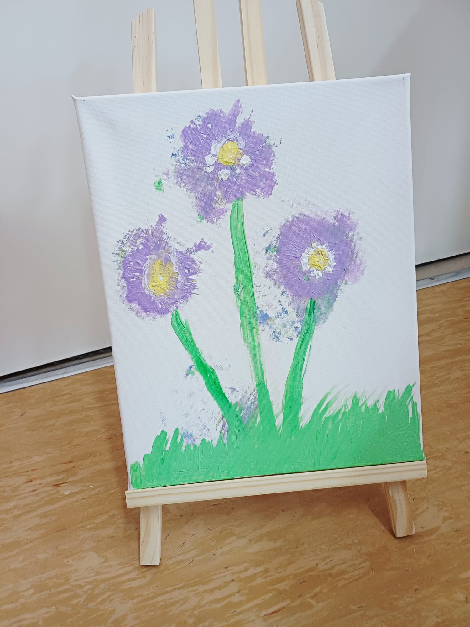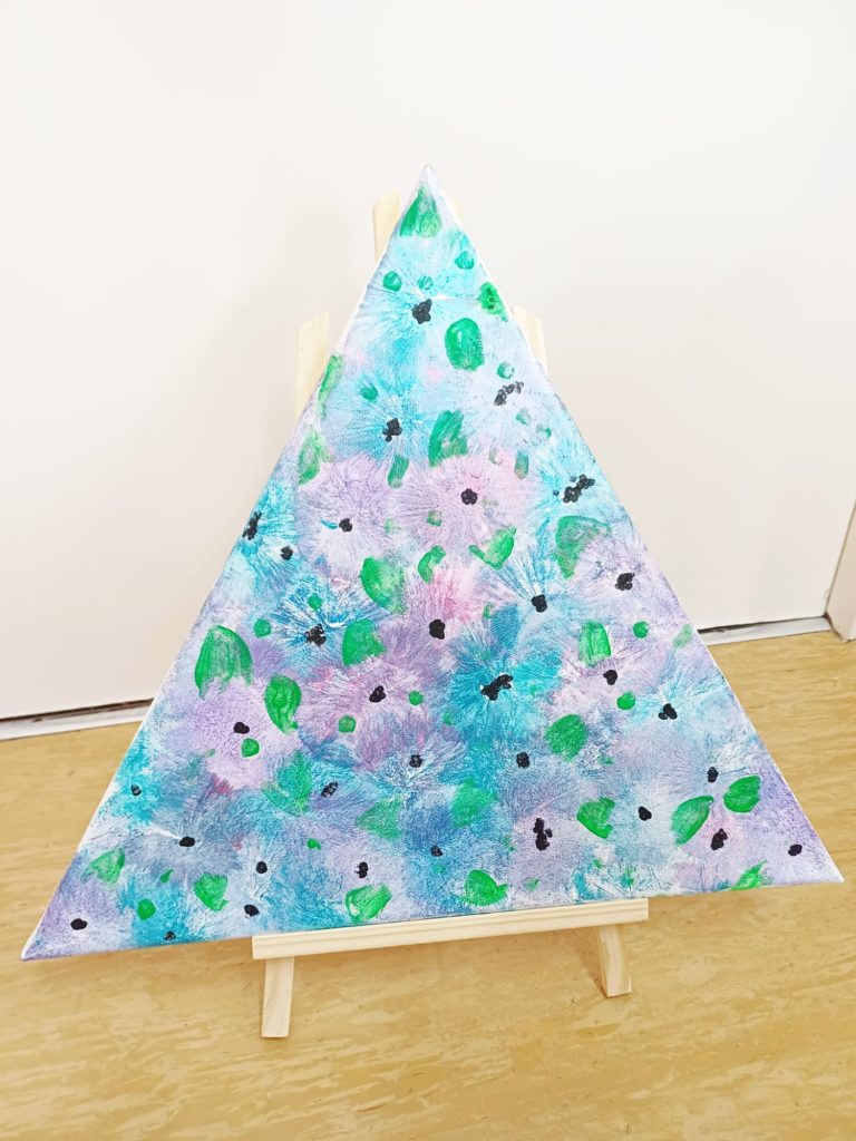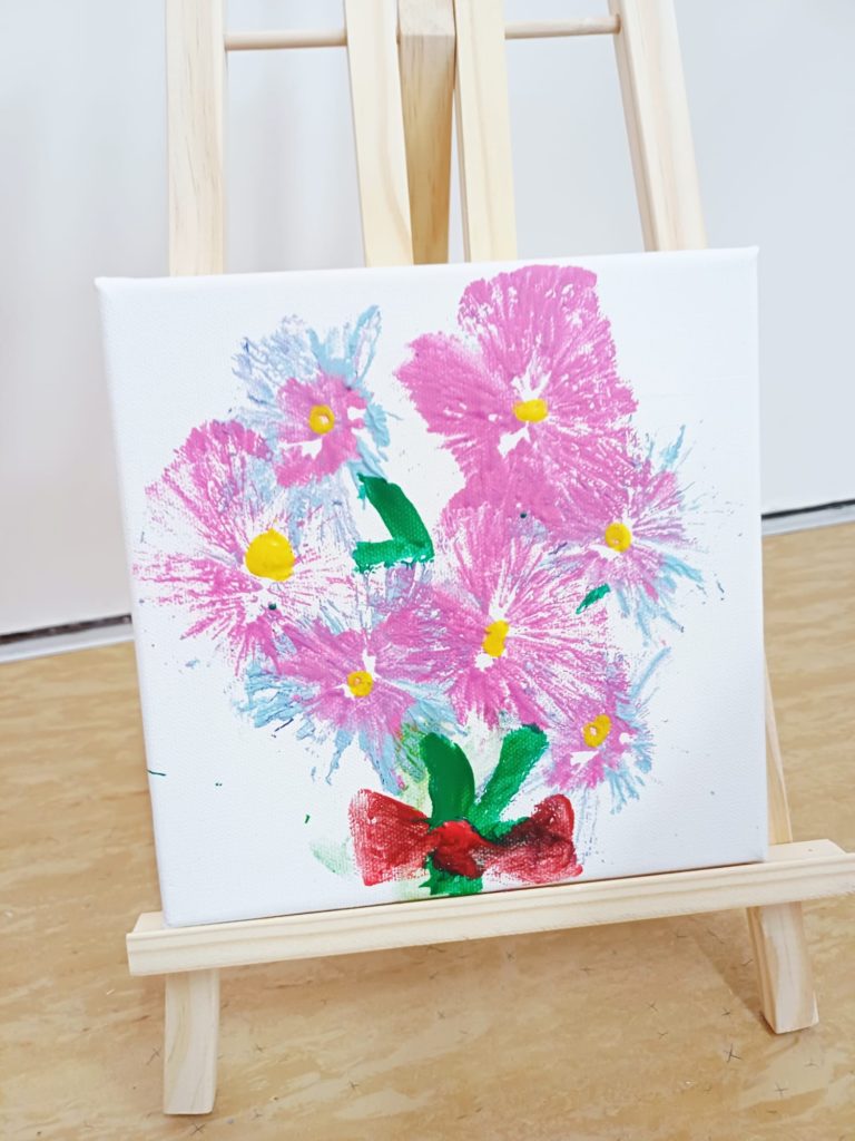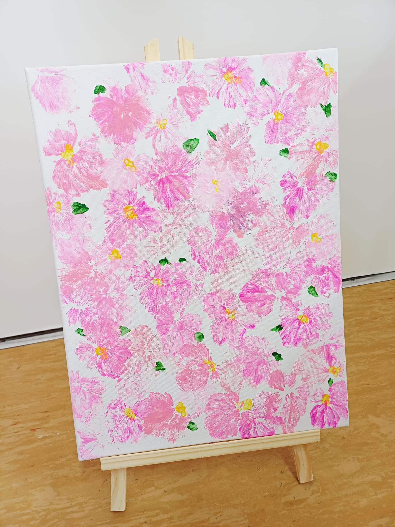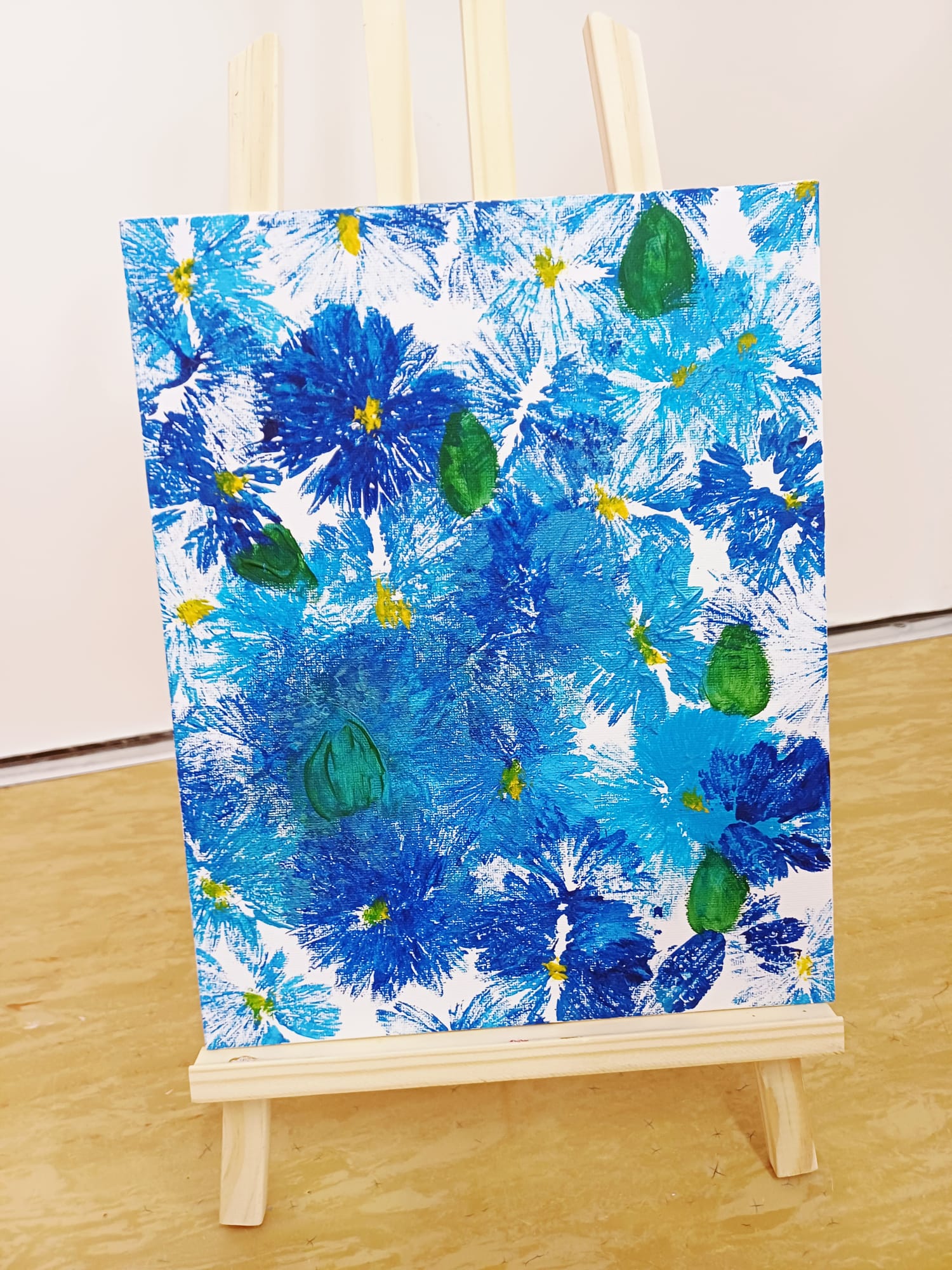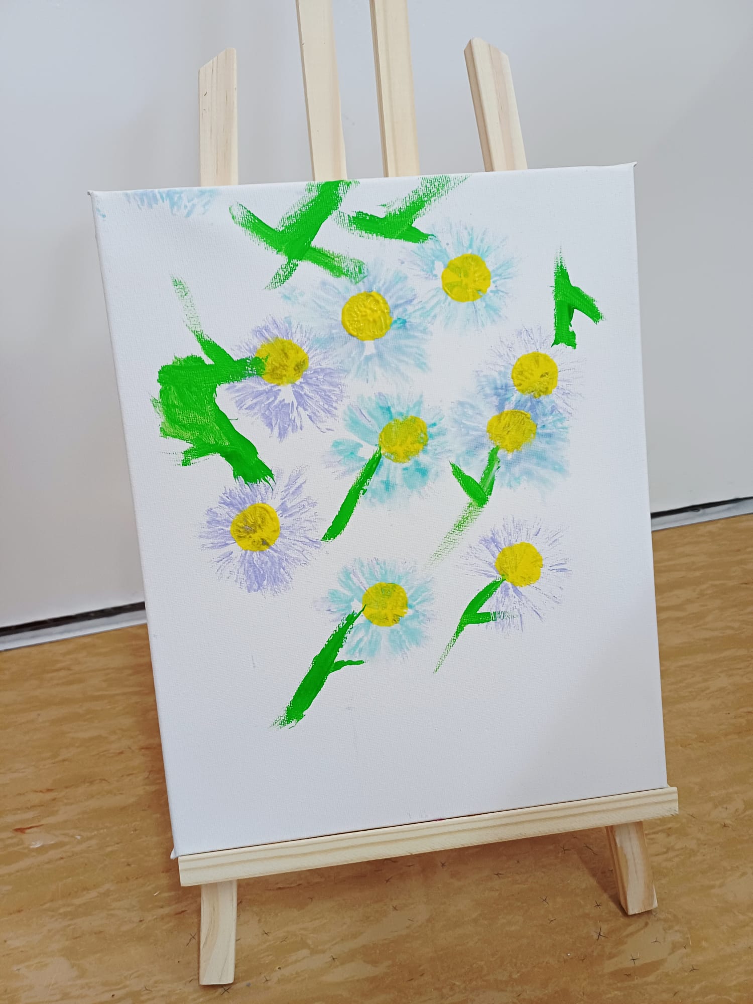 W ten sposób powstawały niepowtarzalne odbitki o ciekawych fakturach i kształtach, przypominające barwne, puszyste kwiaty. Każdy odcisk był inny, co sprawiło, że wszystkie prace są wyjątkowe i jedyne w swoim rodzaju.