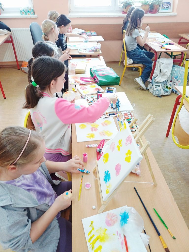 Podczas zajęć dzieci rozwijały wyobraźnię, wrażliwość artystyczną oraz odwagę w podejmowaniu twórczych prób. Przekonały się, że w sztuce można wykorzystywać nieoczywiste narzędzia, a eksperymentowanie prowadzi do zaskakujących efektów.