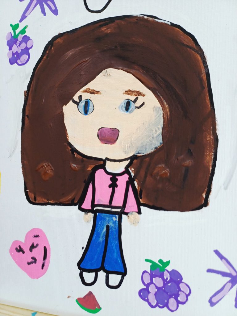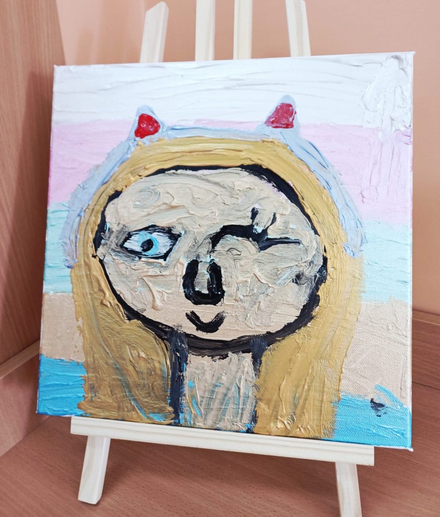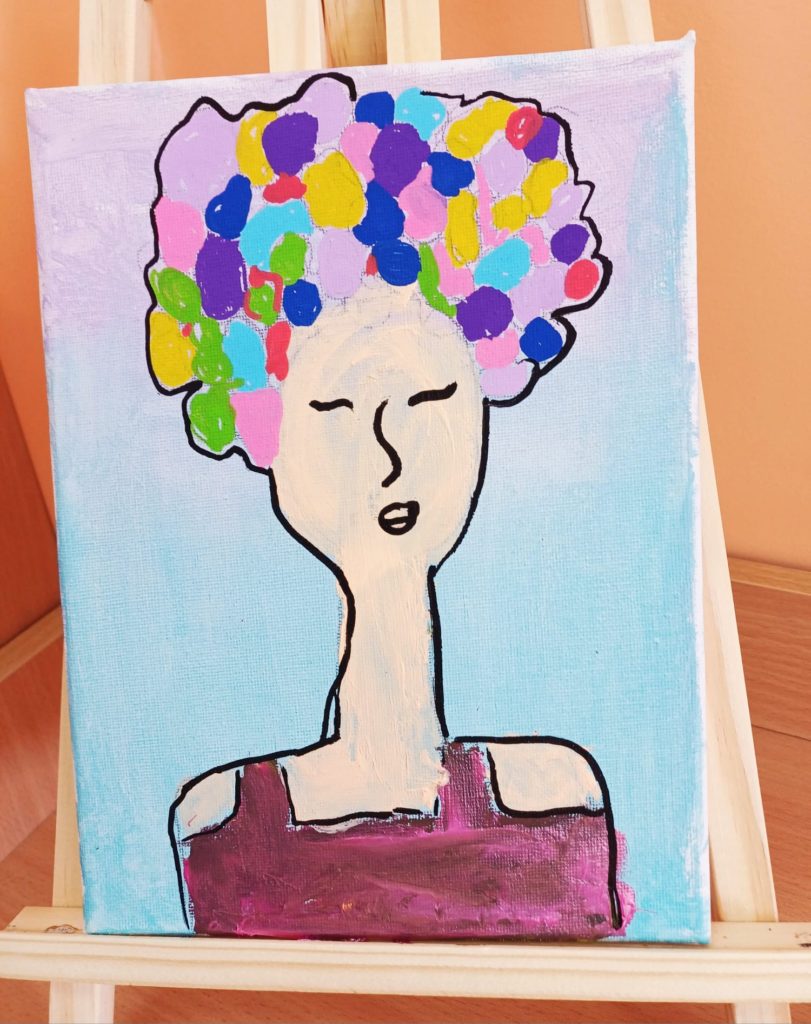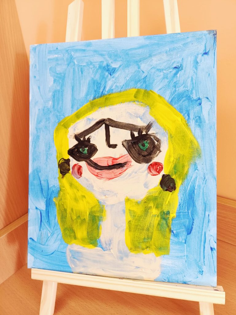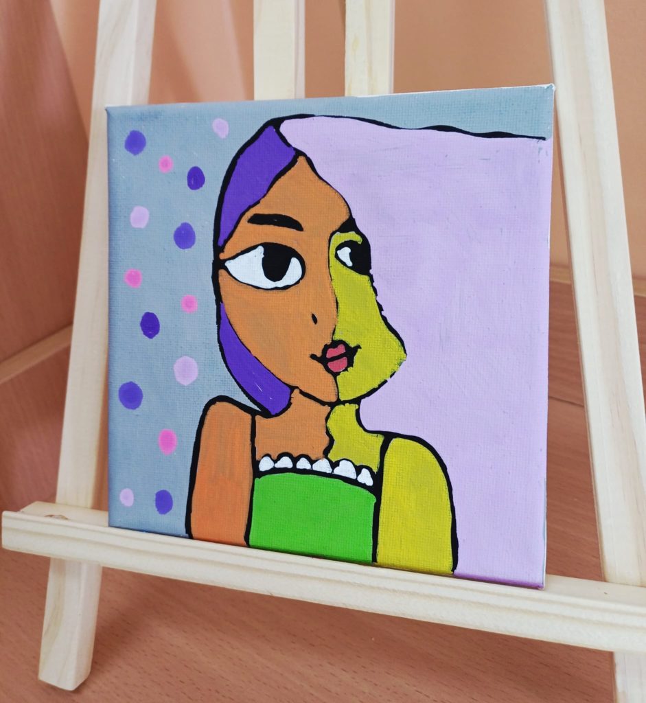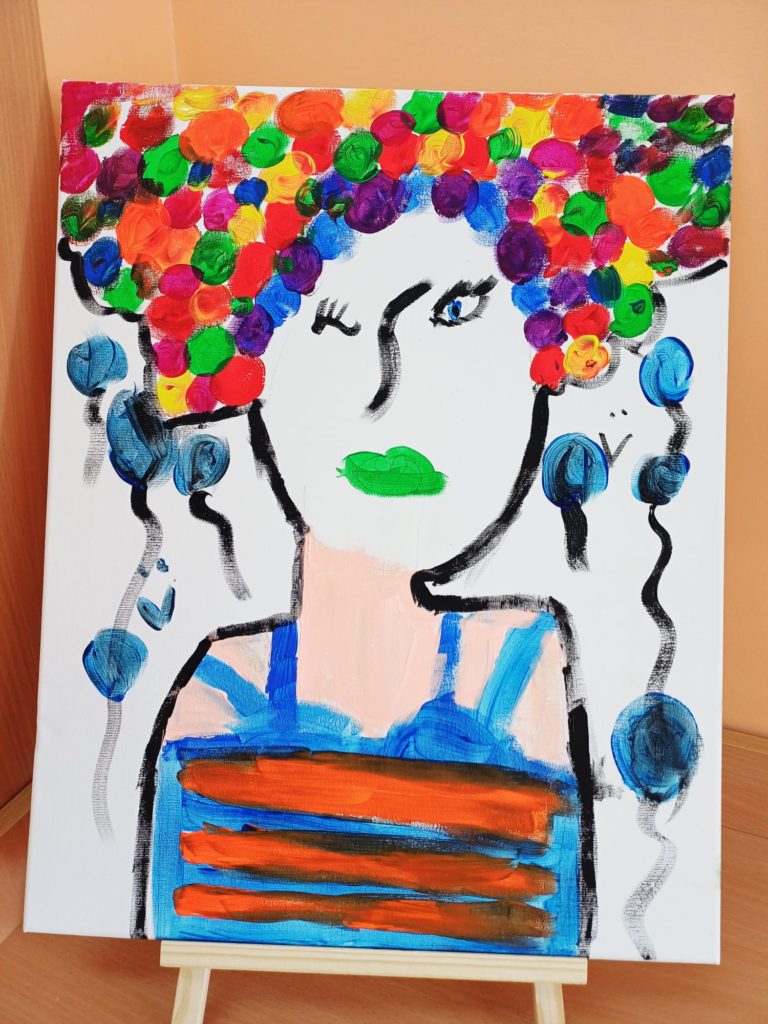 Podczas zajęć kółka plastycznego uczniowie pracowali nad tematem abstrakcyjnej ekspresji na płótnie. Zadanie polegało na stworzeniu portretów z wykorzystaniem wyrazistego, mocnego obrysu, który nadaje postaciom charakter i podkreśla ich formę.