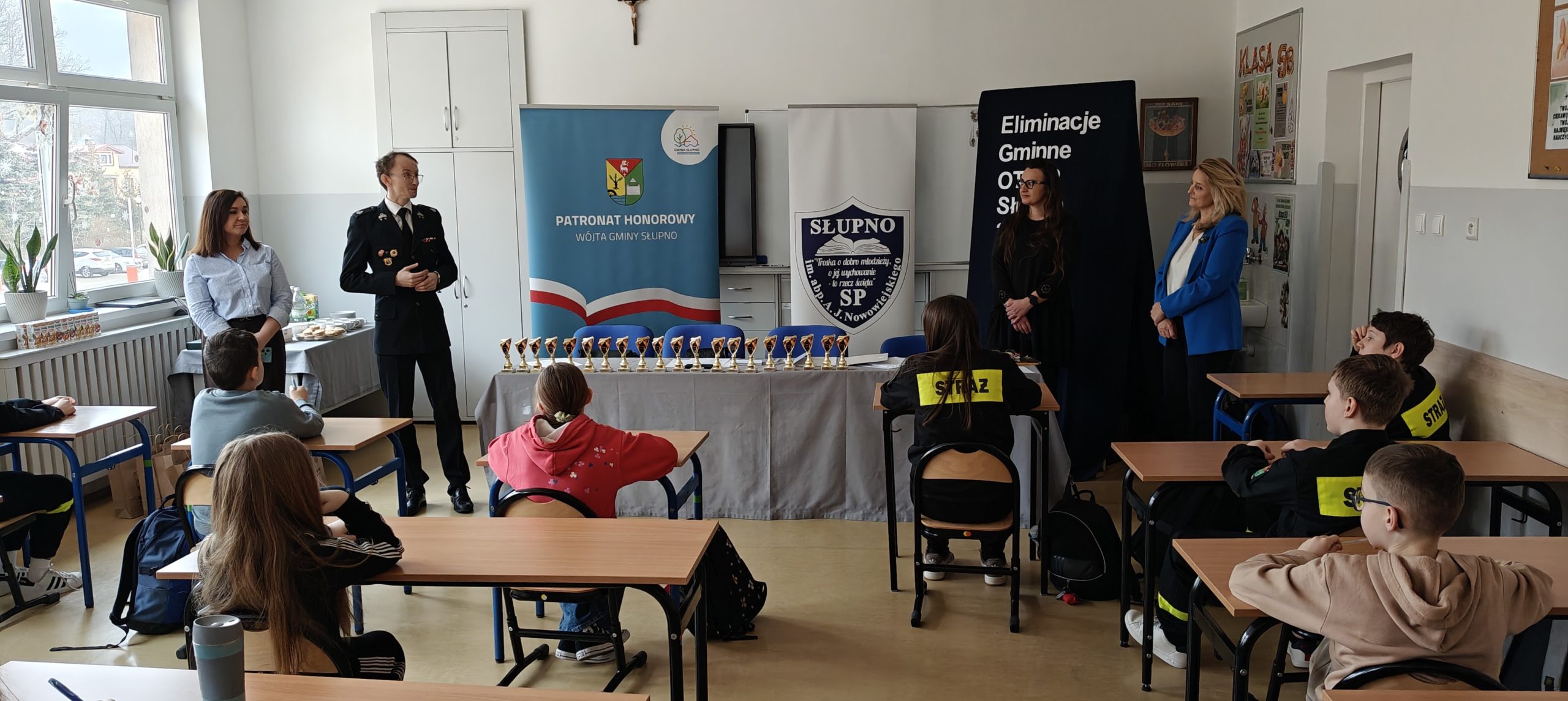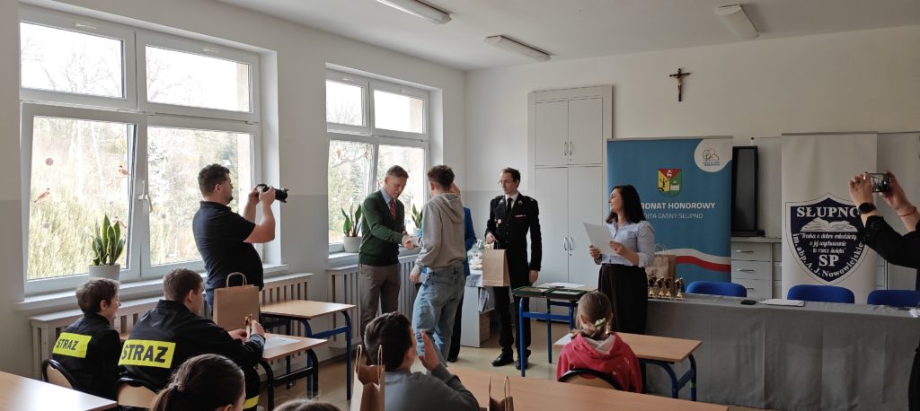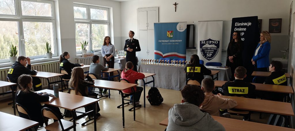Emocje, rywalizacja i ogromna wiedza – tak przebiegały tegoroczne Eliminacje Gminne Ogólnopolskiego Turnieju Wiedzy Pożarniczej „Młodzież Zapobiega Pożarom”, które odbyły się w naszej szkole. Konkurs został zorganizowany przez Zarząd Oddziału Gminnego Związku Ochotniczych Straży Pożarnych RP w Słupnie we współpracy z Samorządem Gminy Słupno za pośrednictwem Komendanta Gminnego ZOSP R – pana Krzysztofa Rygiera.