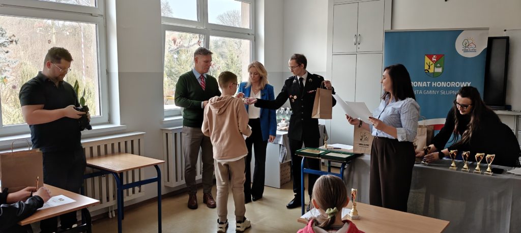 Do turnieju przystąpiło 15 uczniów z terenu naszej gminy, którzy zmierzyli się z wymagającymi pytaniami w dwóch kategoriach wiekowych (klasy I–IV oraz V–VIII). Uczestników powitała pani Anna Mrozowska – Dyrektor Szkoły, a nagrody wręczył Wójt Gminy Słupno – pan Marcin Zawadka.