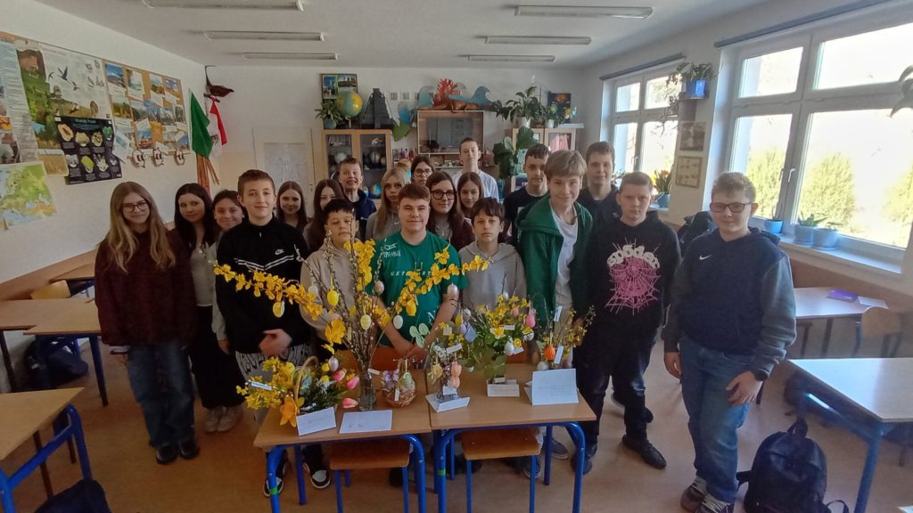 19 marca uczniowie klas 7a i 7c wzięli udział w klasowym projekcie edukacyjnym z języka niemieckiego. Zadaniem uczniów było wykonanie tradycyjnego bukietu wielkanocnego zgodnie ze zwyczajem naszych zachodnich sąsiadów. Uczniowie wykorzystali świeże i sztuczne kwiaty, gałązki wierzby, forsycji oraz pisanki, z których wykonali przepiękne bukiety świąteczne.