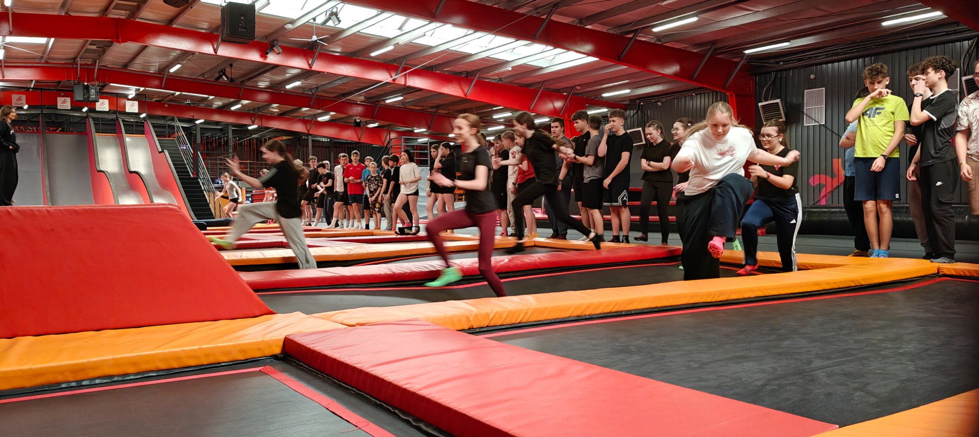 19 marca uczniowie klas 8a i 8b wzięli udział w wyjeździe do Warszawy. W programie znalazła się wizyta w parku trampolin „Hangar 646” na Targówku, gdzie młodzież mogła aktywnie spędzić czas, doskonaląc swoją sprawność fizyczną i świetnie się bawiąc.