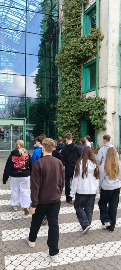 Kolejnym punktem wycieczki była wizyta w Bibliotece Uniwersyteckiej w Warszawie (BUW), podczas której uczniowie mieli okazję zapoznać się z nowoczesną przestrzenią biblioteczną oraz podziwiać teren wiosennego ogrodu przy obiekcie.