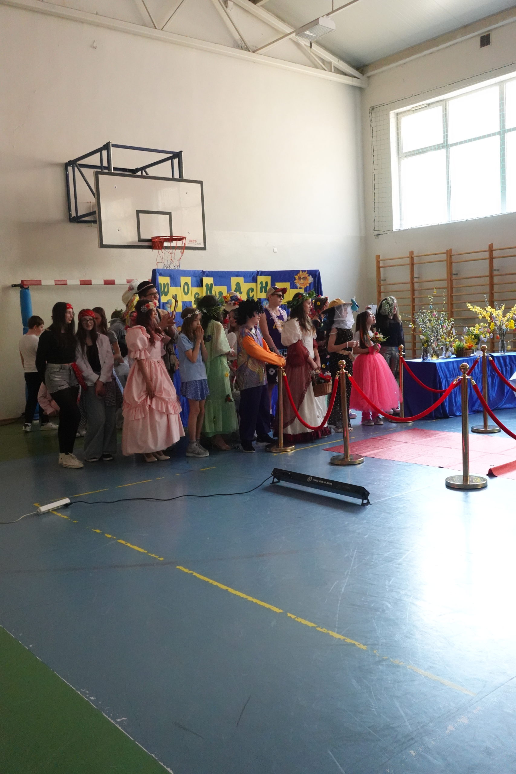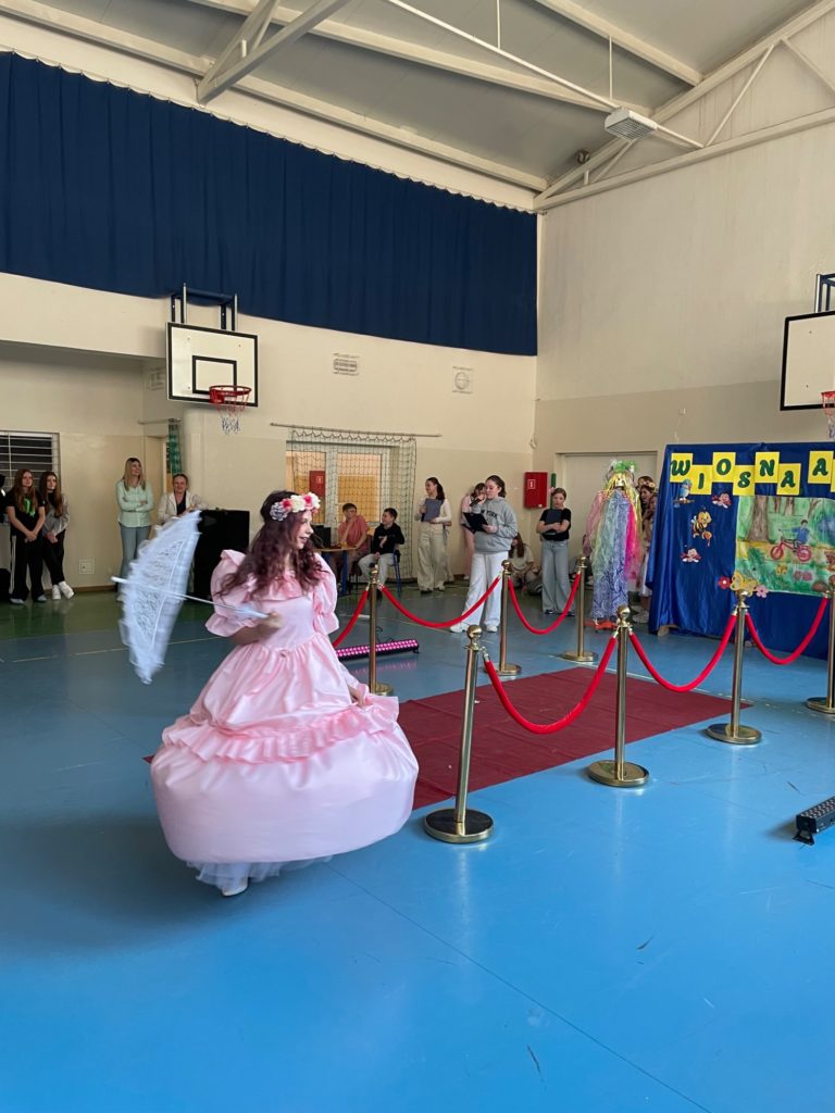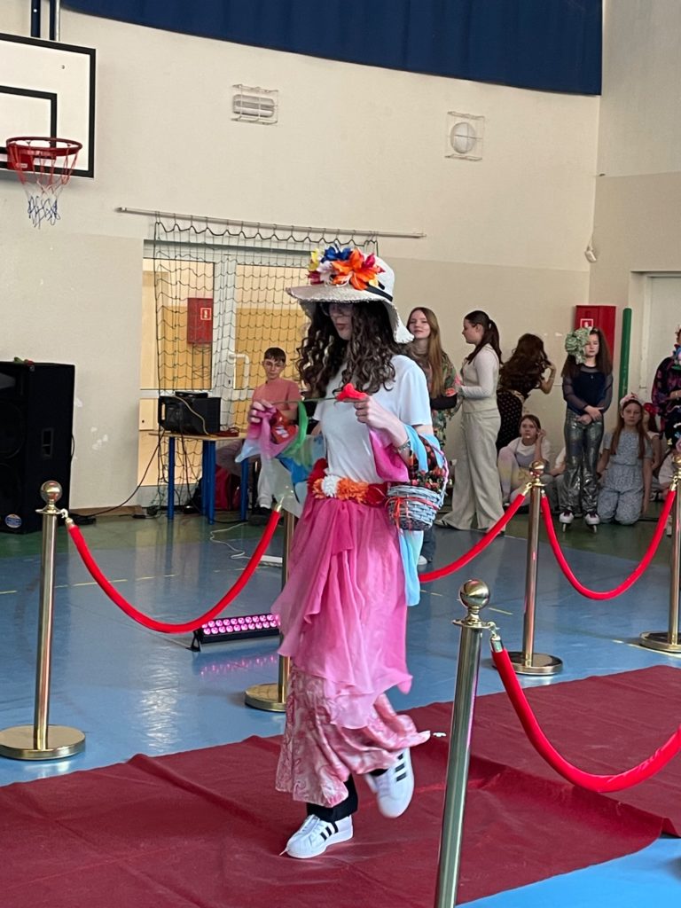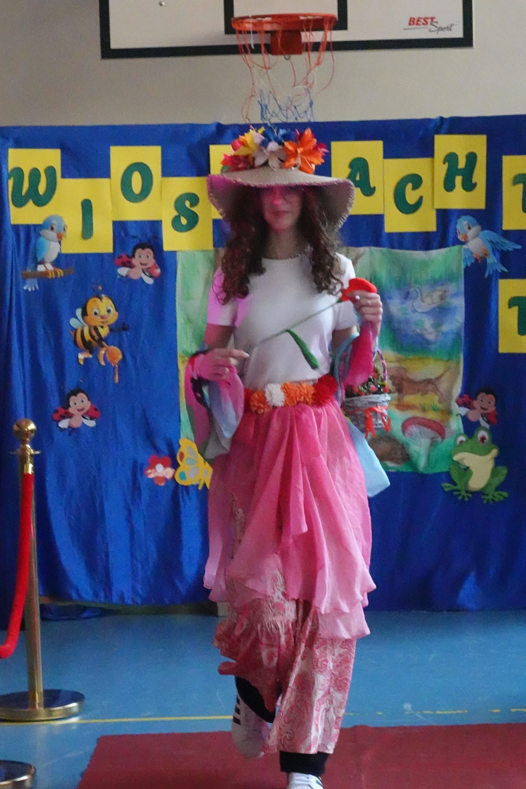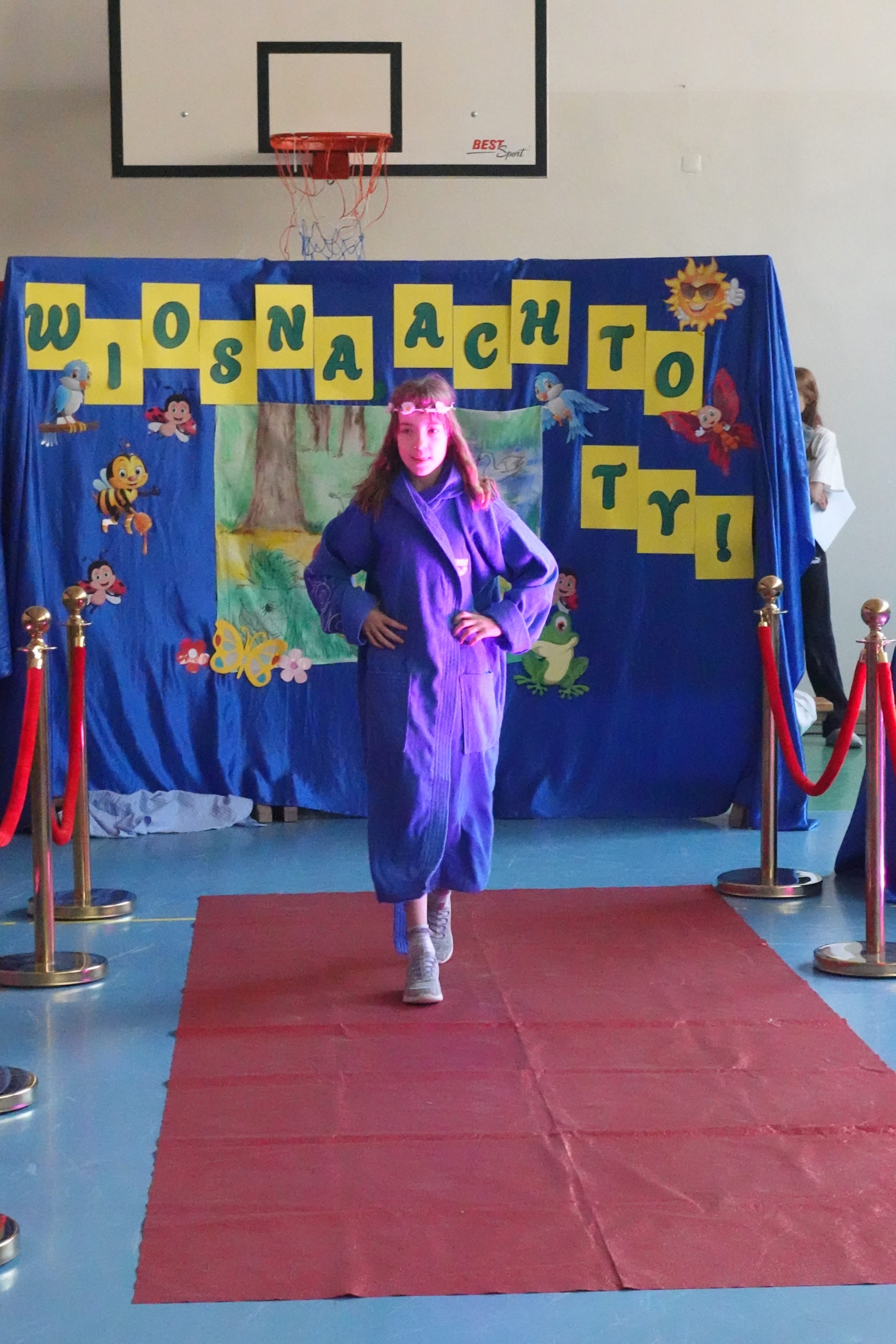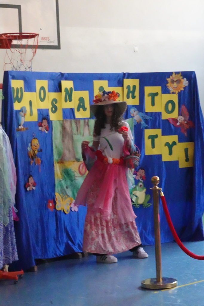 W naszej szkole wiosnę rozpoczęliśmy z mocnym akcentem – Wiosennym Pokazem Mody. Każda klasa II etapu edukacyjnego, miała za zadanie przebrać jedną osobę spośród siebie w strój z dowolnej epoki z elementem wiosennym. Druga osoba krótko podawała najważniejsze informacje dotyczące prezentowanego przebrania. Na szkolnym wybiegu pojawiły się kreacje sięgające baroku, wieku oraz współczesności. Jury pod przewodnictwem pani dyrektor miało trudny orzech do zgryzienia aby wybrać te najlepsze. Ostatecznie I miejsce zdobyła klasa 7b, II miejsce IVc a III miejsce przypadło klasie VII a. Warto jednak podkreślić, że wszystkie klasy stanęły na wysokości zadania przygotowując wspaniałe stroje.