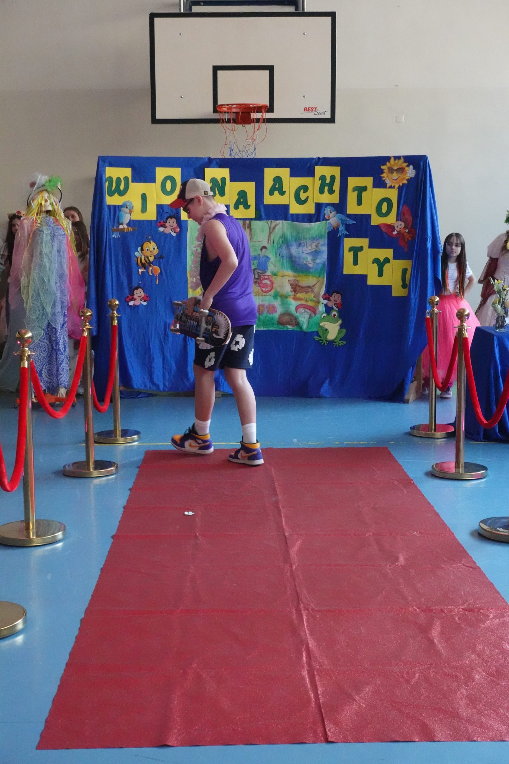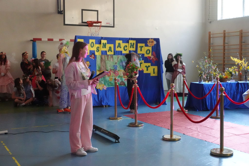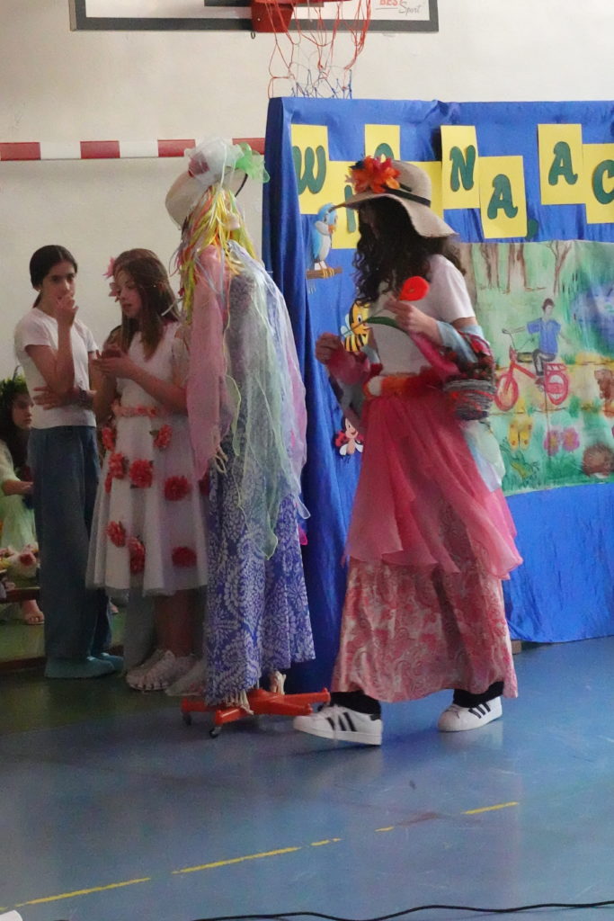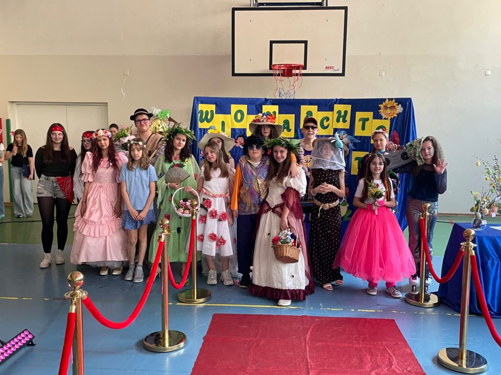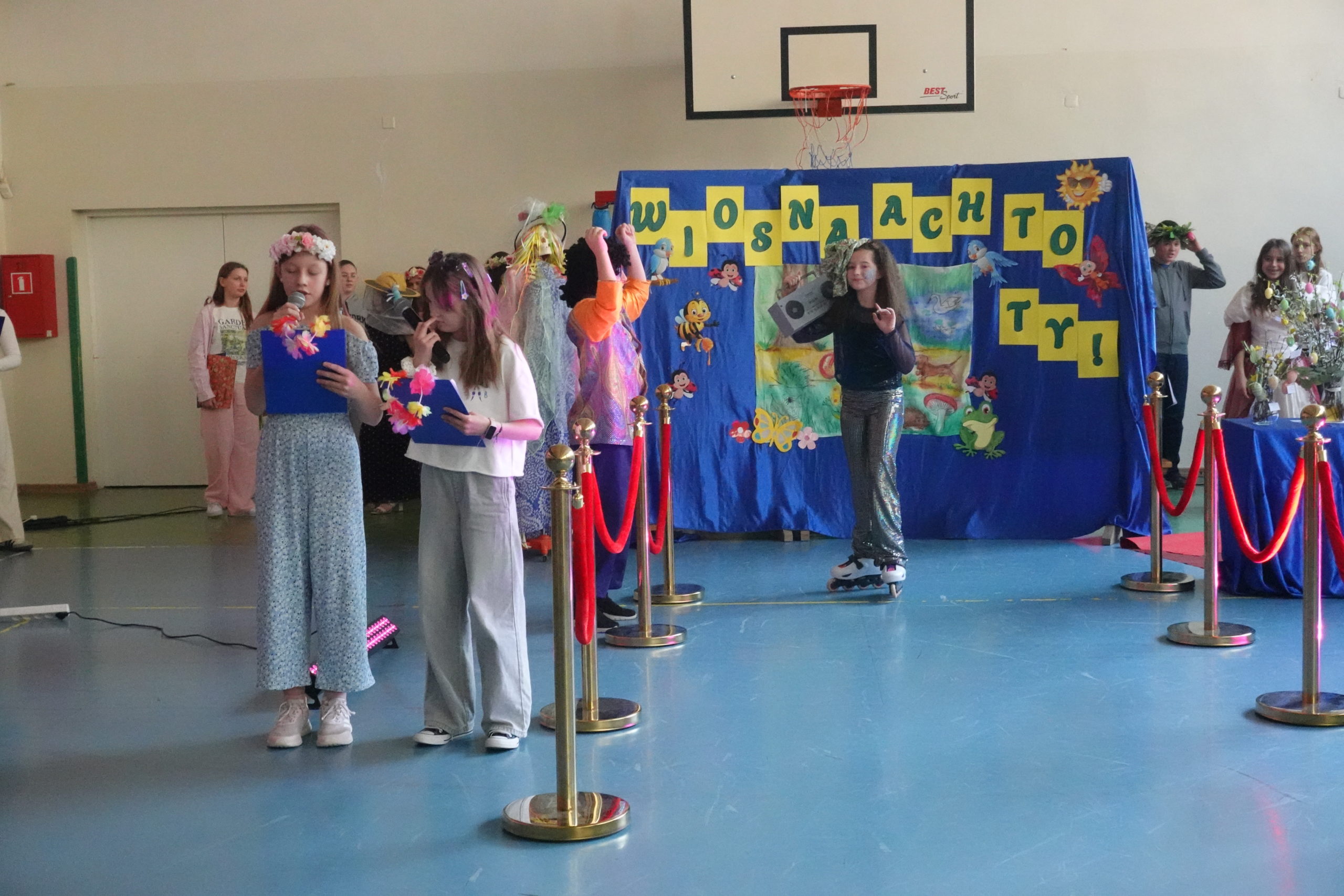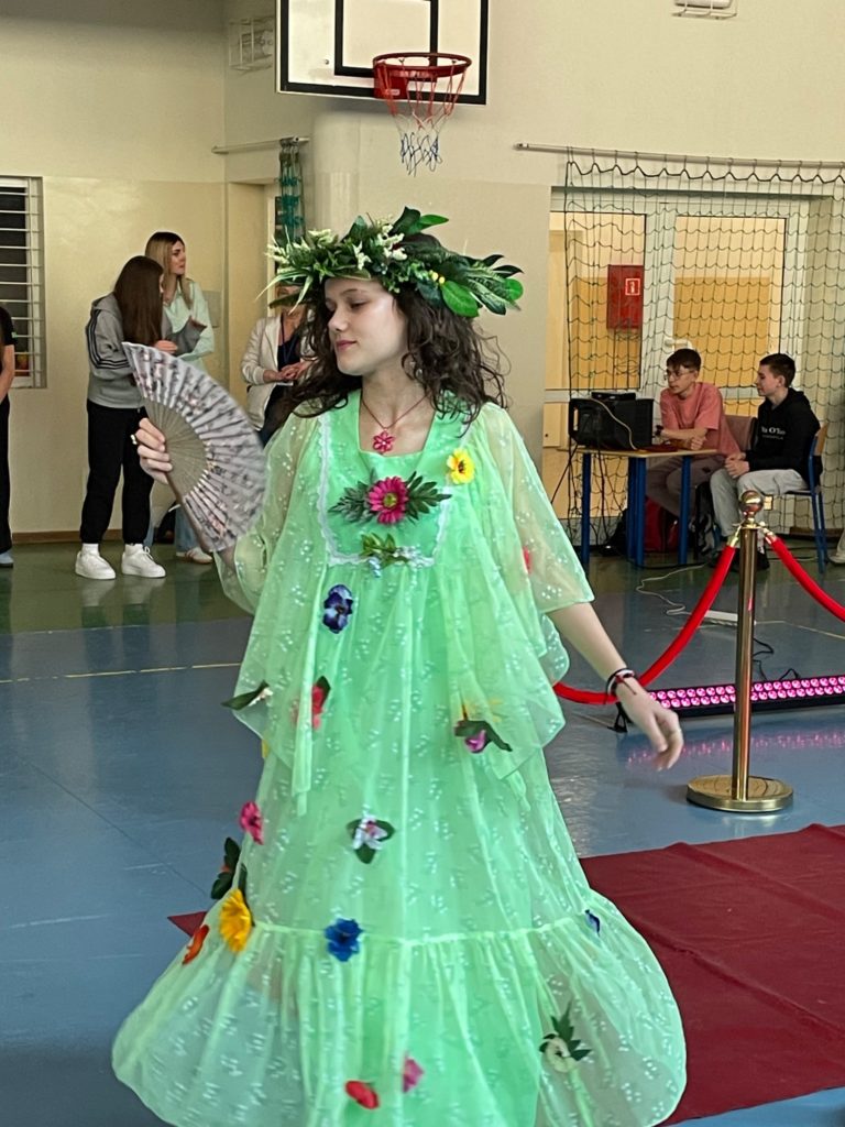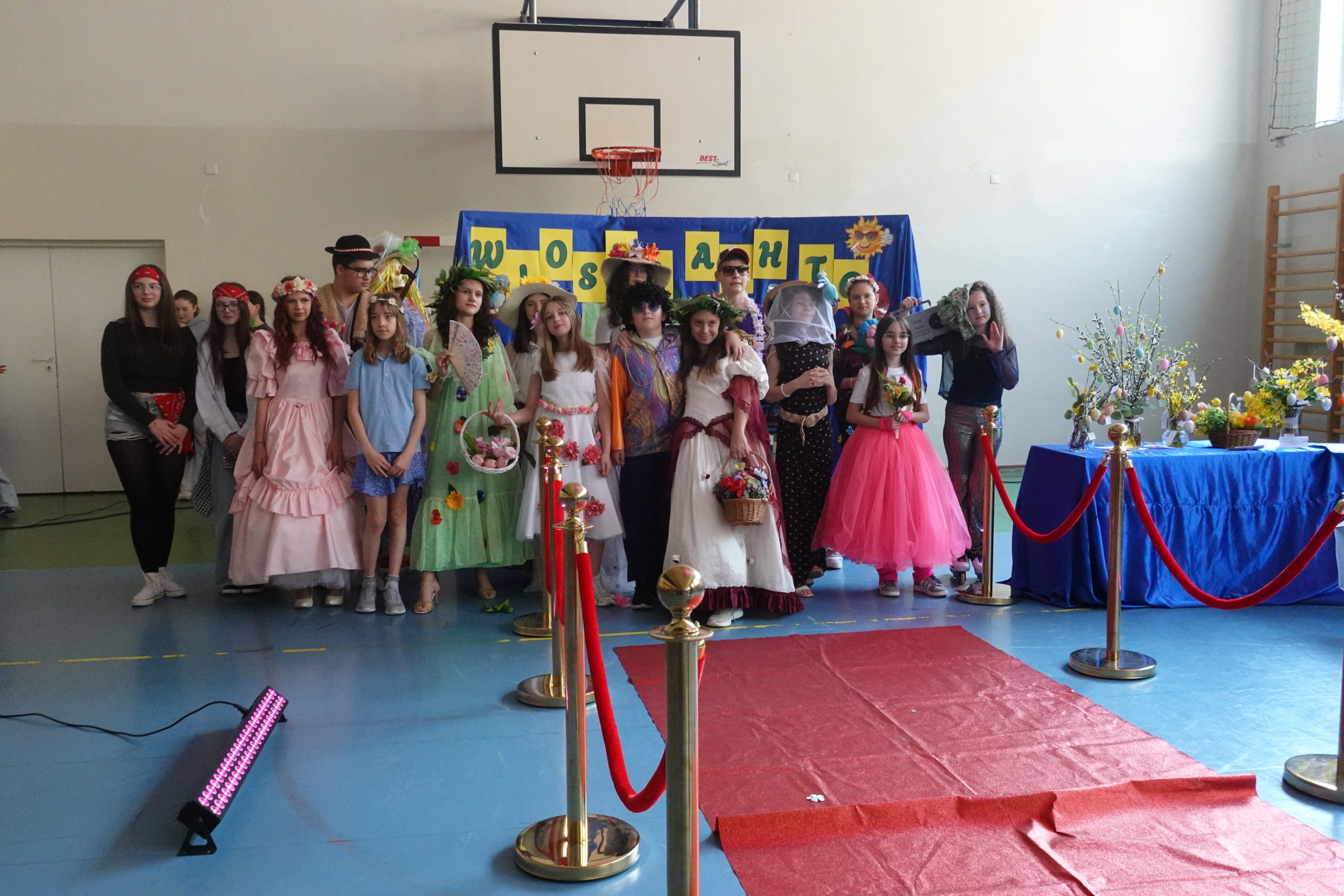 W naszej szkole wiosnę rozpoczęliśmy z mocnym akcentem – Wiosennym Pokazem Mody. Każda klasa II etapu edukacyjnego, miała za zadanie przebrać jedną osobę spośród siebie w strój z dowolnej epoki z elementem wiosennym. Druga osoba krótko podawała najważniejsze informacje dotyczące prezentowanego przebrania. Na szkolnym wybiegu pojawiły się kreacje sięgające baroku, wieku oraz współczesności. Jury pod przewodnictwem pani dyrektor miało trudny orzech do zgryzienia aby wybrać te najlepsze. Ostatecznie I miejsce zdobyła klasa 7b, II miejsce IVc a III miejsce przypadło klasie VII a. Warto jednak podkreślić, że wszystkie klasy stanęły na wysokości zadania przygotowując wspaniałe stroje.