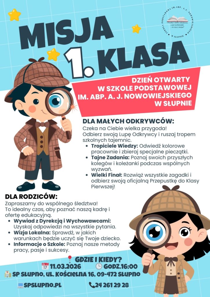 Zgodnie z zarządzeniem Wójta Gminy Słupno nr 14/2026 z dnia 27 stycznia 2026 od 13 lutego 2026 r. rozpoczyna się rekrutacja dzieci do klasy pierwszej Szkoły Podstawowej im. abp. Antoniego Juliana Nowowiejskiego w Słupnie na rok szkolny 2026/2027.